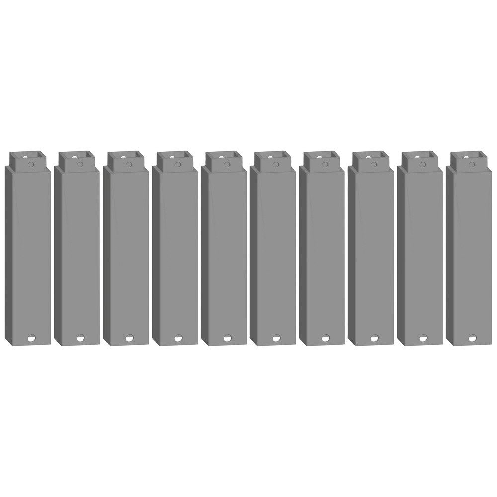 Mit diesem Set an Pfeilerelementen erhalten Sie hohe Pfeiler in einem bereits bewährten Maß, die Sie ganz einfach auf Ihrer individuellen Modellbahnanlage einbauen können. Die Pfeiler werden lediglich auf die bereits auf die Grundplatte aufgeschaubten Bodenplatten gesteckt. Wahlweise können diese verschraubt oder verklebt werden.