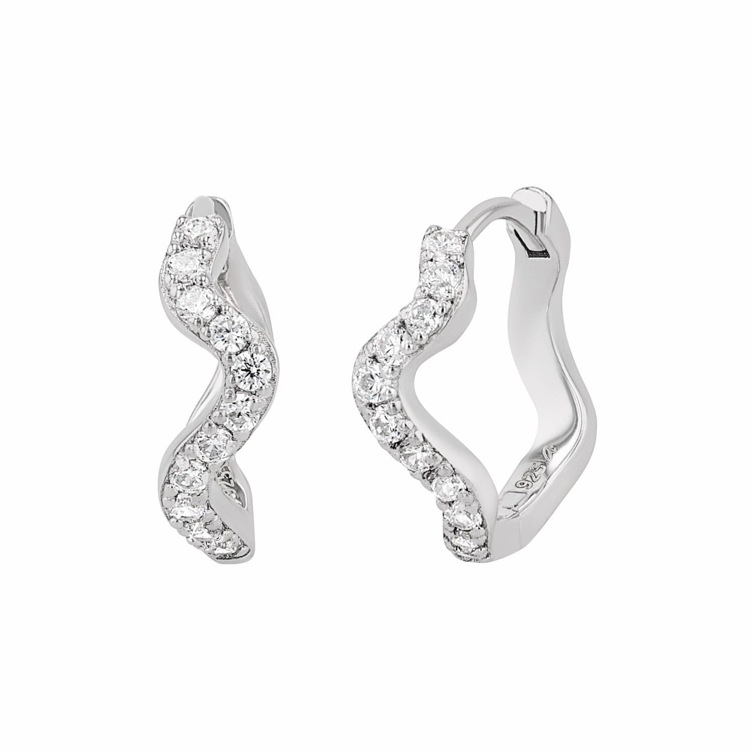 Funkelnde Creolen für Damen von NOELANI in innovativem Design. Die gewellte Form der Ohrringe macht aus ihnen ein modernes Schmuckstück, das alle Blicke auf sich zieht. Ganz besonders auffällig sind die zahlreichen strahlenden (synth.) Zirkonia Schmucksteine, mit denen der Ohrschmuck verziert ist. Die Hoops wurden aus hochwertigem Sterling Silber gefertigt und haben eine Размер von 15 mm. Ein praktischer Scharnierverschluss sorgt für ein einfaches An- und Ablegen. Der Ohrschmuck kommt in einer passenden Schmuckbox.