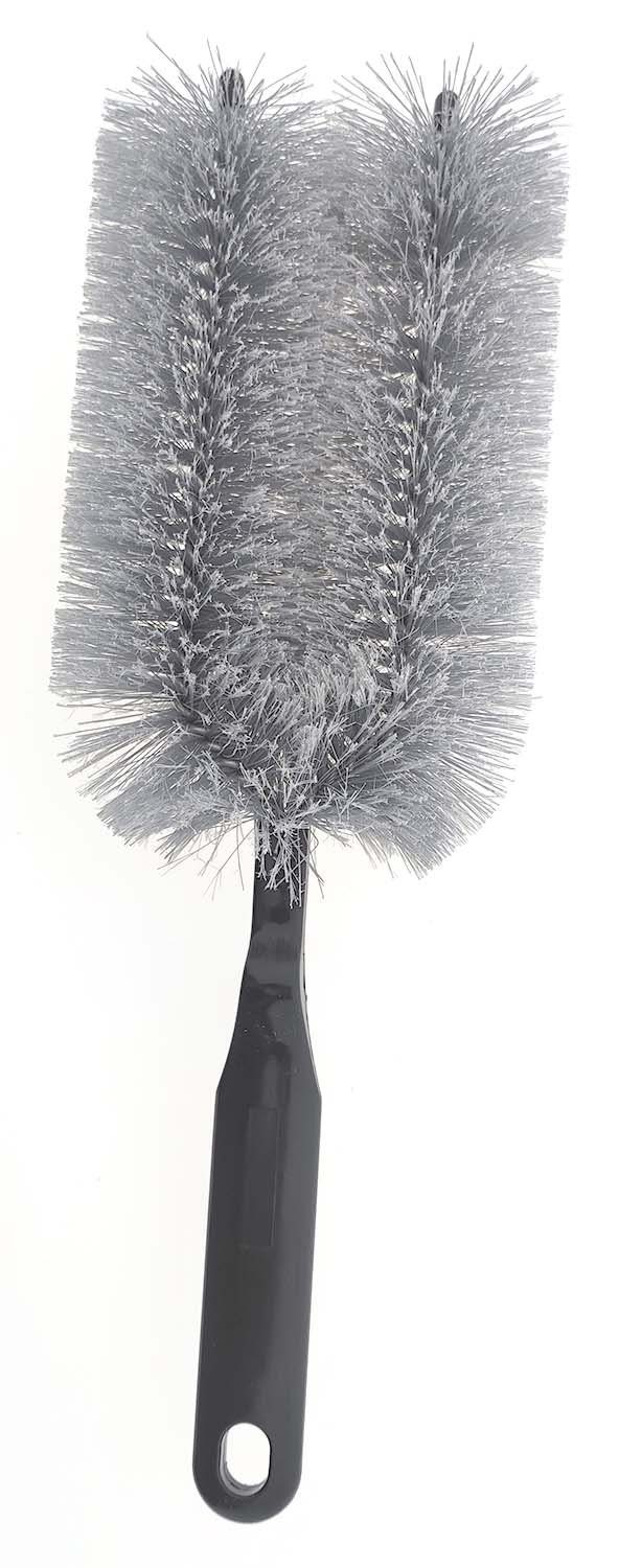 Geschlitzte Synthetikborste, 2 Raupe. Gedrehter Draht mit großem Kunststoffgriff. Der Draht ist kräftig und biegsam.