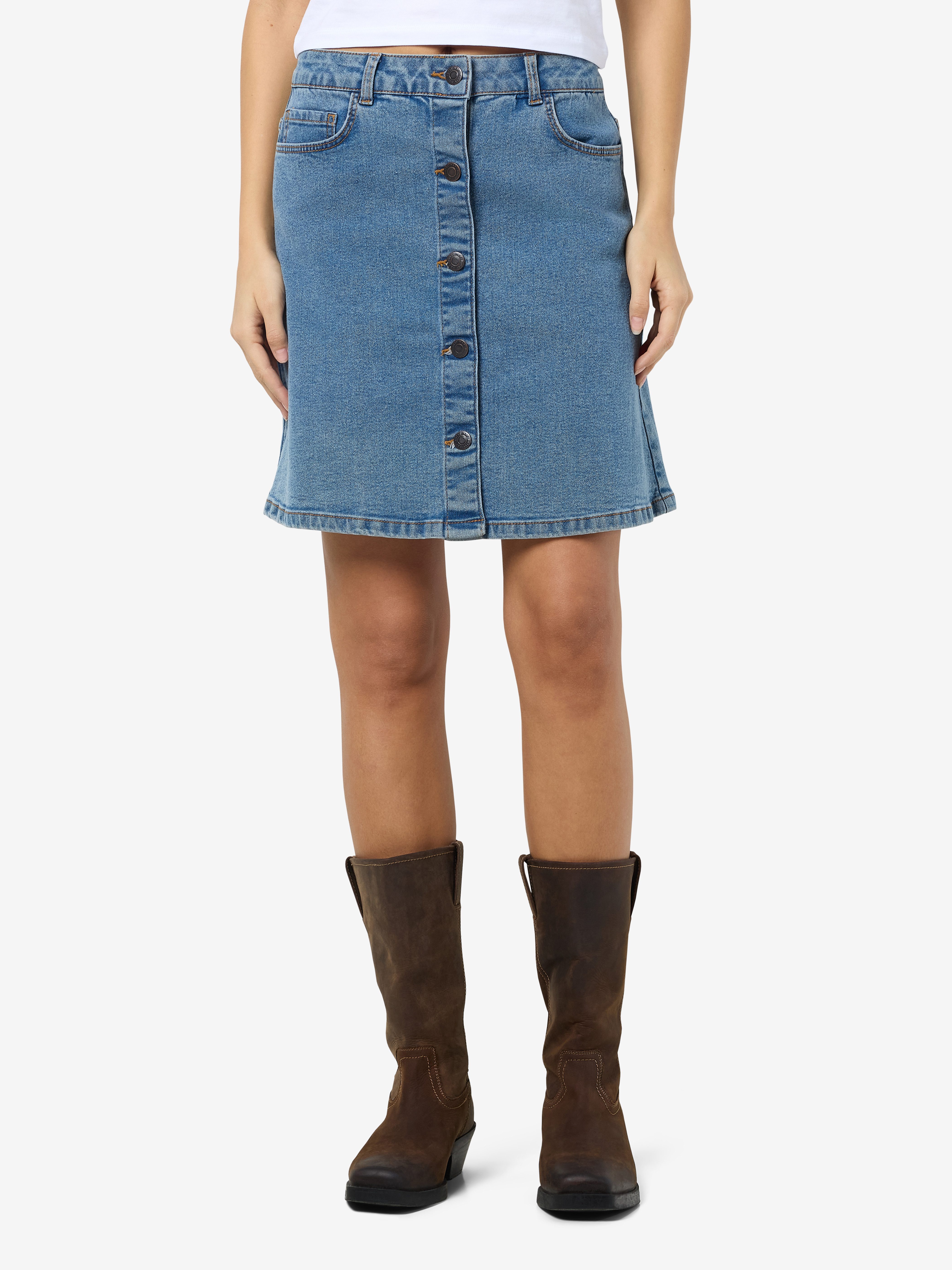 Mit dem kurzen Jeansrock »NMRONNIE NW A SHAPE SKIRT VI375LB NOOS« von Noisy may bist du stilvoll unterwegs. Der ausgestellte Schnitt betont deine Taille.
