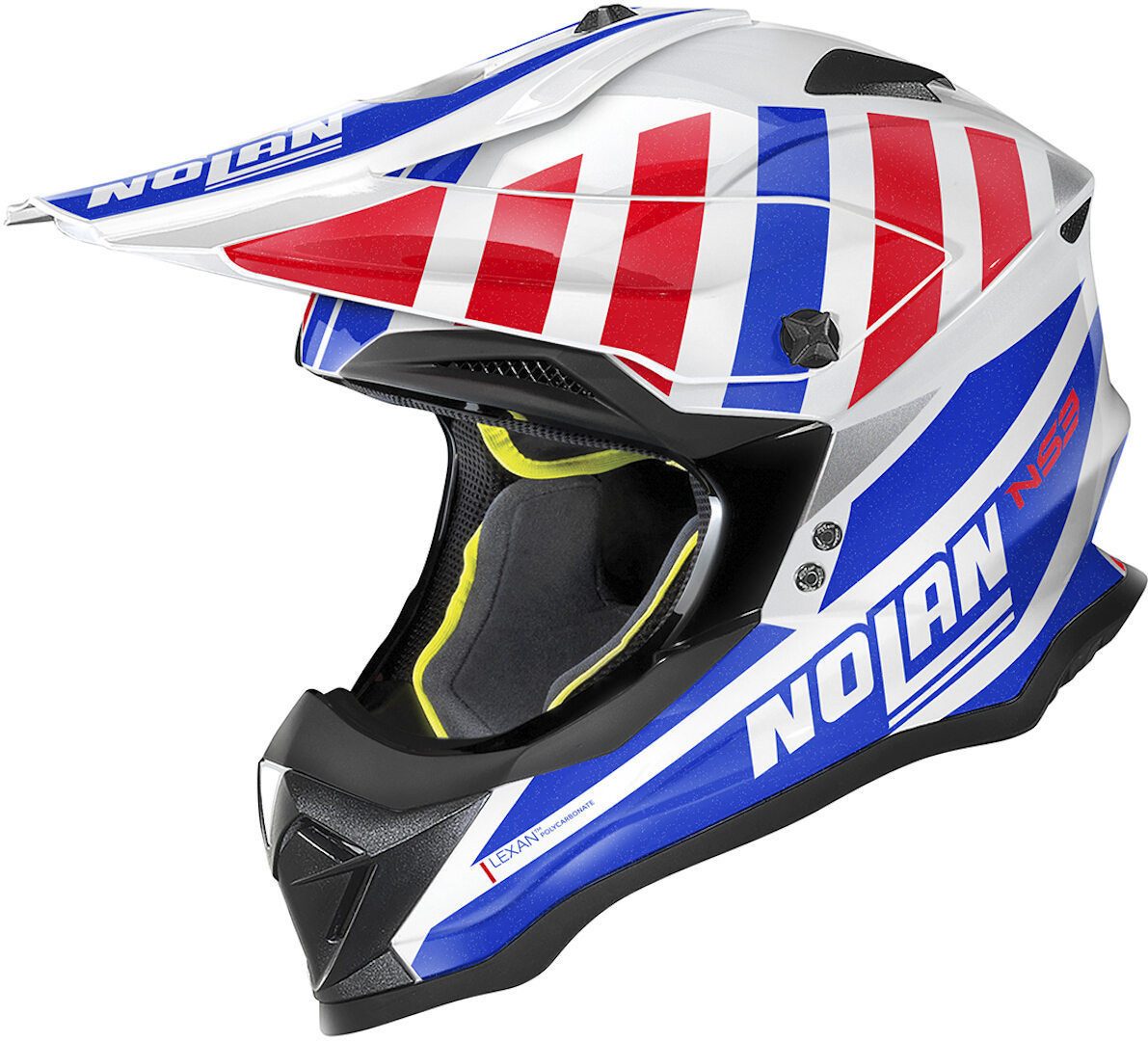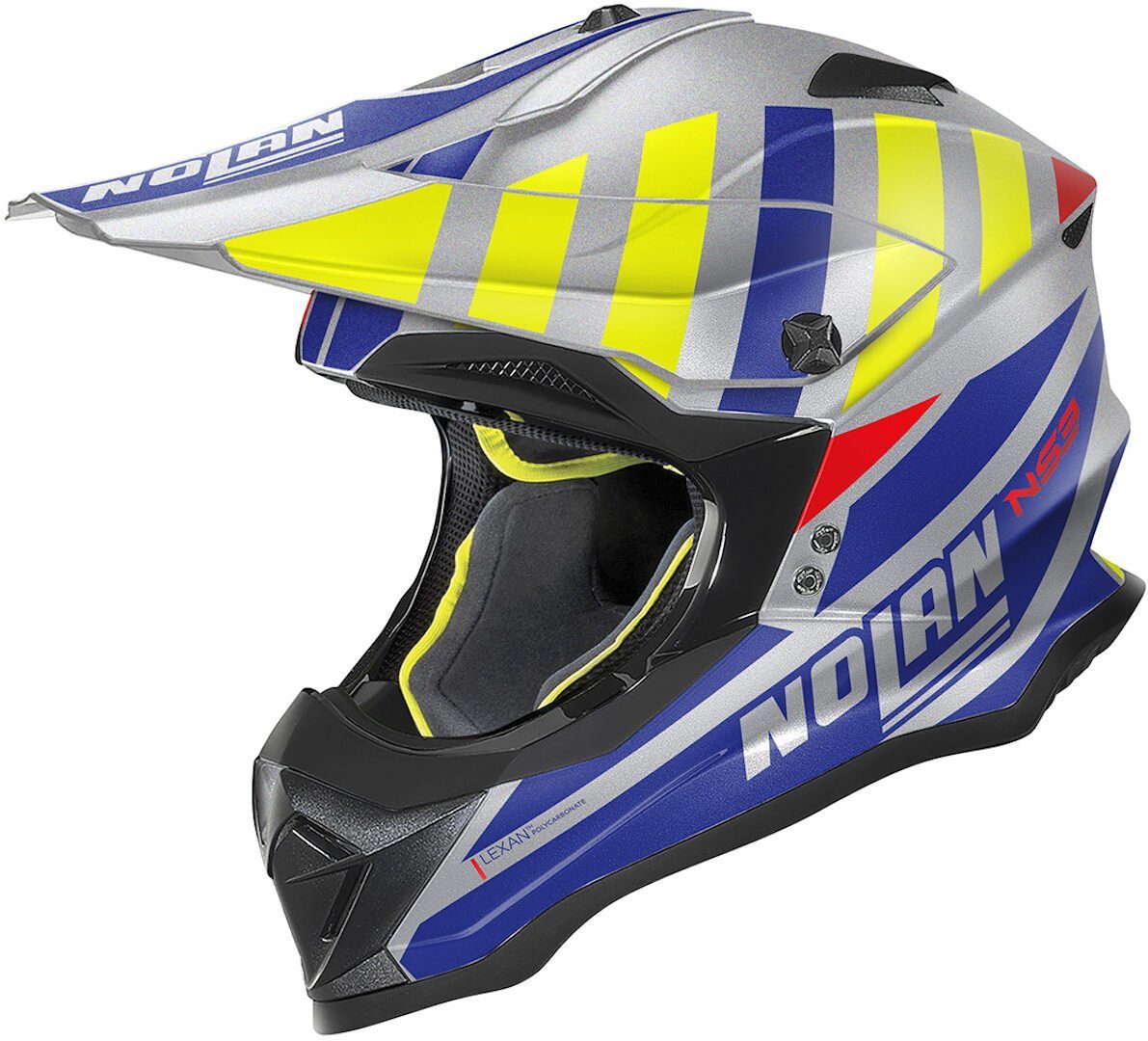 Das ist Nolans Off-Road-Helm. Er zeichnet sich durch ein aggressives Design, technische Eigenschaften und eine breite Palette an Farben und Grafiken aus. Seine kompakte Размер (dank der Verfügbarkeit von zwei Außenschalengrößen), das extra breite Sichtfenster, das obere Belüftungssystem AirBooster Technology und die Clima Comfort-Innenpolsterung (die im Hinblick auf die starke Beanspruchung des Produkts entwickelt wurde) machen den N53 zu einem interessanten Produkt für Offroad-Enthusiasten.