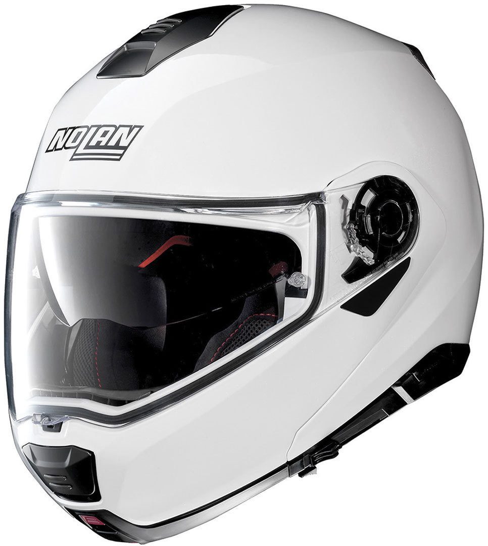Der neue Komfort-Klapphelm führt die Entwicklung des Nolan N100-5 konsequent weiter und überzeugt durch elegentes Design, zahlreiche technische Features und eine riesige Auswahl an Farben und Dekoren. Seine kompakten Abmessungen (Dank zwei verschiedener Schalengrößen), doppelter P/J-Homologation, ein Ultra-Wide-Visier, ein in verschiedenen Positionen einstellbares Sonnenvisier, Airbooster-Technologie für optimale Belüftung, ein am Oberkopf einstellbares Innenfutter mit innovativer Netzstruktur, die patentierte elliptische Öffnungsmechanik und vieles mehr machen den Nolan N100-5 Plus zur Referenz in der Klasse der Klapphelm-Allrounder.