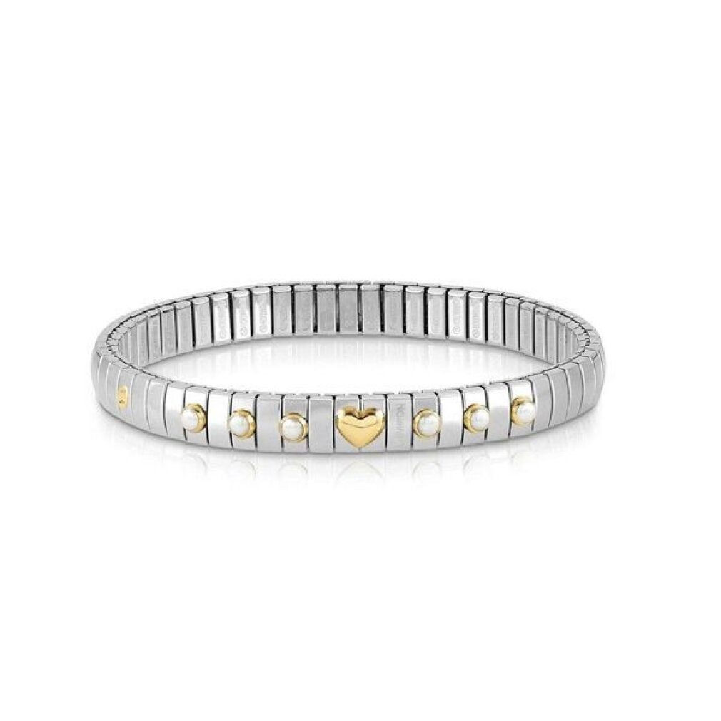 • Material Armband: Edelstahl Silber, Material Details: Gold 750, Steine: Perle Weiß