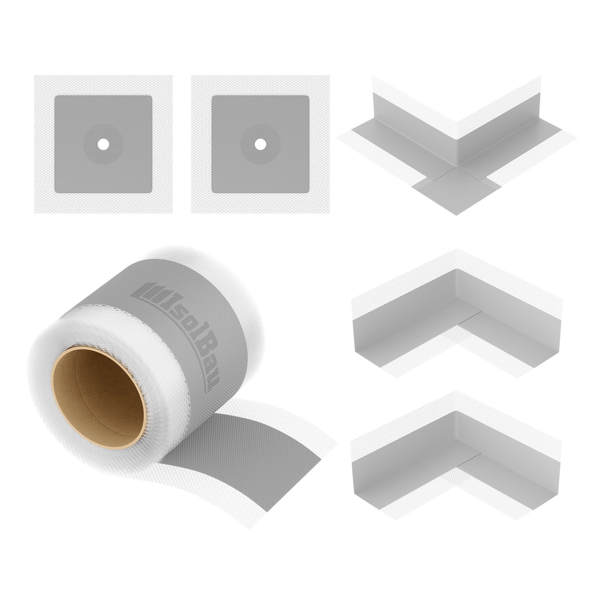 Erhältlich als Dichtband, Innenecken sowie Dichtkragen