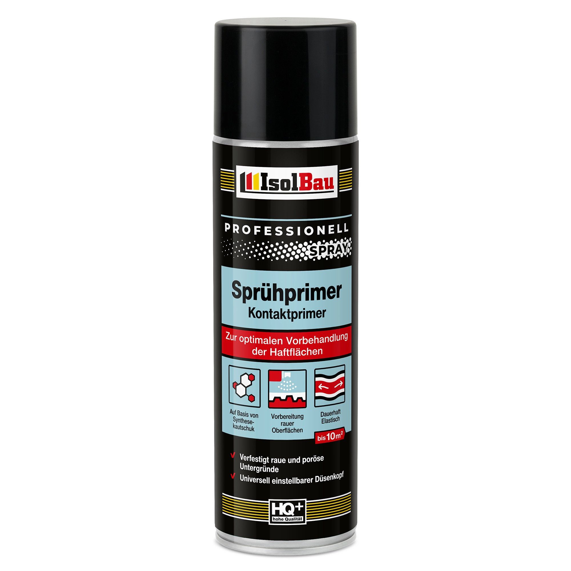 Isolbau Sprühprimer ist Einkomponenten-Grundierung auf Synthesekautschukbasis für den professionellen Handwerk- und Haushalteinsatz. Als Grundierung wird zur Vorbereitung von mineralischen, porösen, saugenden, nichtsaugenden und sandenden Untergründen wie z.B. Beton, Porenbeton, Ziegel, Gips, Metall, Holz, Spanplatten, Glas, PVC, PUR, PE, PP, Schaumstoffen, Leder und viele andere empfohlen. Empfohlen bei der Verklebung der Fensterbänder, Dichtbänder, Bitumenbänder, Dampfbremsen / Dampfsperren, Fassadenbahnen, Folien, Textilien, Dichtstoffen auf Basis von Polyacrylat, Synthese- und Butylkautschuk, uvm.