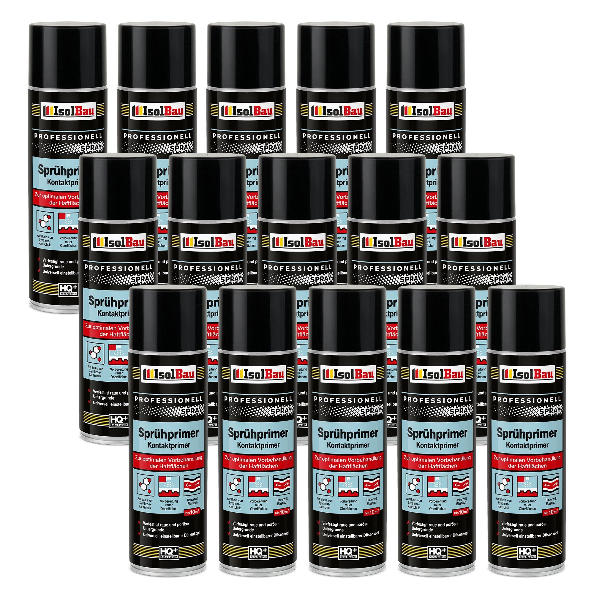 Isolbau Sprühprimer ist Einkomponenten-Grundierung auf Synthesekautschukbasis für den professionellen Handwerk- und Haushalteinsatz. Als Grundierung wird zur Vorbereitung von mineralischen, porösen, saugenden, nichtsaugenden und sandenden Untergründen wie z.B. Beton, Porenbeton, Ziegel, Gips, Metall, Holz, Spanplatten, Glas, PVC, PUR, PE, PP, Schaumstoffen, Leder und viele andere empfohlen. Empfohlen bei der Verklebung der Fensterbänder, Dichtbänder, Bitumenbänder, Dampfbremsen / Dampfsperren, Fassadenbahnen, Folien, Textilien, Dichtstoffen auf Basis von Polyacrylat, Synthese- und Butylkautschuk, uvm.