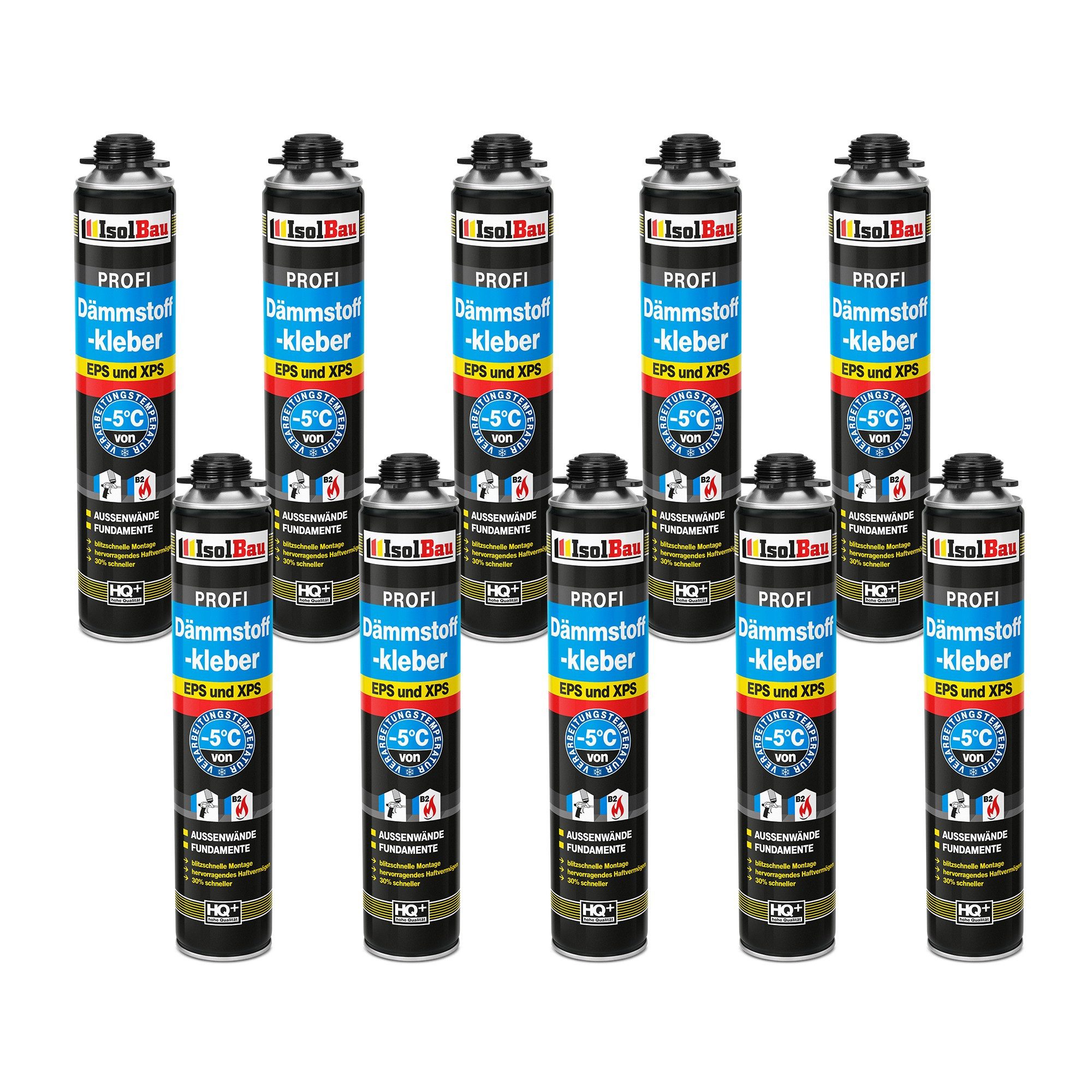 IsolBau PROFI Dämmstoffkleber ist ein spezieller gebrauchsfertiger, schwach expandierender 1K-Polyurethankleber. Hat hervorragende Schall, Klebe- und Wärmedämmeigenschaften, einen niedrigen Aushärtedruck und eine geringe Nachdehnung. Der PROFI Dämmstoffkleber ist ideal zum Kleben von Polystyrolplatten (EPS und XPS), PUR und PIR Platten in Wärmedämmsystemen für Gebäude nach der BSO-Methode (leicht nass), WDVS-Wärmedämmverbundsystem, bei Wärmeisolierung von Fundamenten und bodennahen Gebäudeteilen, Kellern etc., Konzipiert zum Verkleben aller Dämmstoffe auf verschiedenen Bauuntergründen. Haftet sehr gut auf unterschidlichen Materialien, wie Polystyrol, Gipsplatten, Holz, Beton, Bitumen, Stein, Metall und PVC. Für Anwendungen im Erdreich geeignet, da er nach dem Aushärten verrottungsfest und feuchtigkeitsbeständig ist. Hohe Ausbeute von freigeschäumt bis zu 45 l - ermöglicht die Verklebung bis zu 12 m² Wandfläche. Die Verarbeitung mit dem System Pistole und Dose bringt einen Zeitvorteil von ca. 30 %. Zwei Stunden nach dem Verkleben können die Platten geschliffen und verdübelt werden.