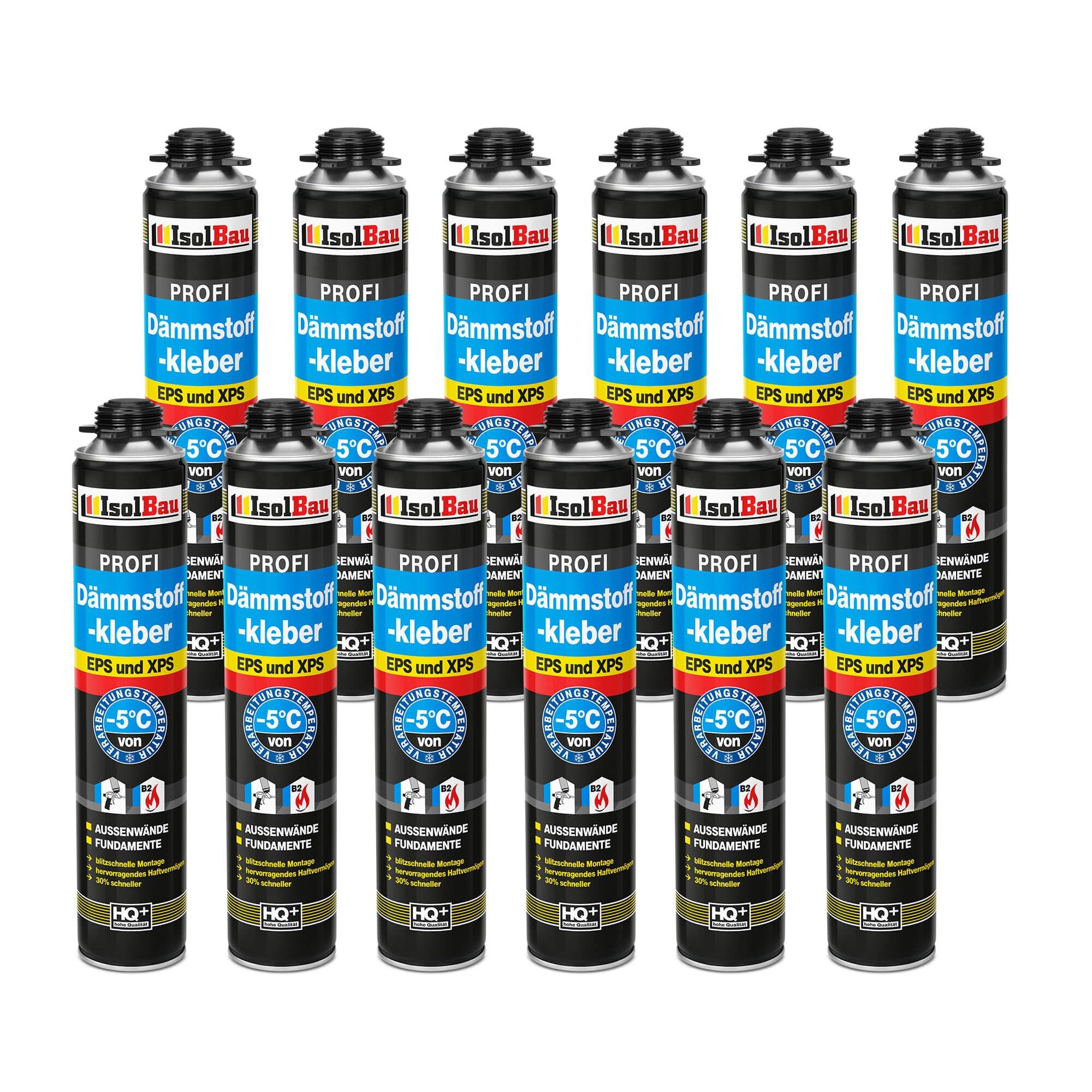 IsolBau PROFI Dämmstoffkleber ist ein spezieller gebrauchsfertiger, schwach expandierender 1K-Polyurethankleber. Hat hervorragende Schall, Klebe- und Wärmedämmeigenschaften, einen niedrigen Aushärtedruck und eine geringe Nachdehnung. Der PROFI Dämmstoffkleber ist ideal zum Kleben von Polystyrolplatten (EPS und XPS), PUR und PIR Platten in Wärmedämmsystemen für Gebäude nach der BSO-Methode (leicht nass), WDVS-Wärmedämmverbundsystem, bei Wärmeisolierung von Fundamenten und bodennahen Gebäudeteilen, Kellern etc., Konzipiert zum Verkleben aller Dämmstoffe auf verschiedenen Bauuntergründen. Haftet sehr gut auf unterschidlichen Materialien, wie Polystyrol, Gipsplatten, Holz, Beton, Bitumen, Stein, Metall und PVC. Für Anwendungen im Erdreich geeignet, da er nach dem Aushärten verrottungsfest und feuchtigkeitsbeständig ist. Hohe Ausbeute von freigeschäumt bis zu 45 l - ermöglicht die Verklebung bis zu 12 m² Wandfläche. Die Verarbeitung mit dem System Pistole und Dose bringt einen Zeitvorteil von ca. 30 %. Zwei Stunden nach dem Verkleben können die Platten geschliffen und verdübelt werden.