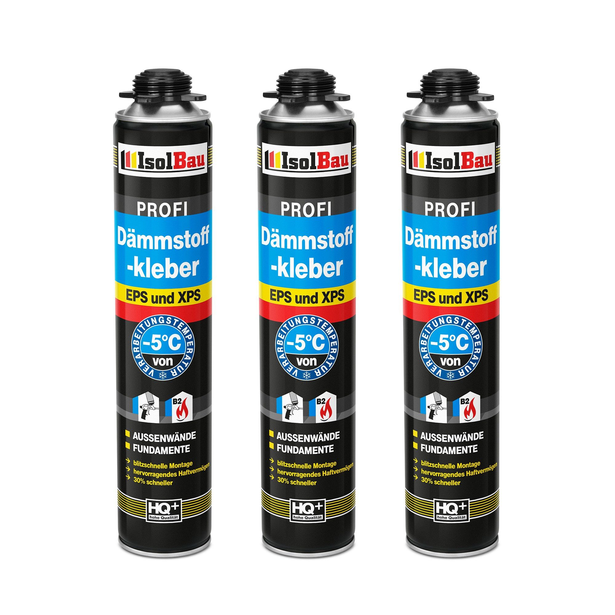 IsolBau PROFI Dämmstoffkleber ist ein spezieller gebrauchsfertiger, schwach expandierender 1K-Polyurethankleber. Hat hervorragende Schall, Klebe- und Wärmedämmeigenschaften, einen niedrigen Aushärtedruck und eine geringe Nachdehnung. Der PROFI Dämmstoffkleber ist ideal zum Kleben von Polystyrolplatten (EPS und XPS), PUR und PIR Platten in Wärmedämmsystemen für Gebäude nach der BSO-Methode (leicht nass), WDVS-Wärmedämmverbundsystem, bei Wärmeisolierung von Fundamenten und bodennahen Gebäudeteilen, Kellern etc., Konzipiert zum Verkleben aller Dämmstoffe auf verschiedenen Bauuntergründen. Haftet sehr gut auf unterschidlichen Materialien, wie Polystyrol, Gipsplatten, Holz, Beton, Bitumen, Stein, Metall und PVC. Für Anwendungen im Erdreich geeignet, da er nach dem Aushärten verrottungsfest und feuchtigkeitsbeständig ist. Hohe Ausbeute von freigeschäumt bis zu 45 l - ermöglicht die Verklebung bis zu 12 m² Wandfläche. Die Verarbeitung mit dem System Pistole und Dose bringt einen Zeitvorteil von ca. 30 %. Zwei Stunden nach dem Verkleben können die Platten geschliffen und verdübelt werden.