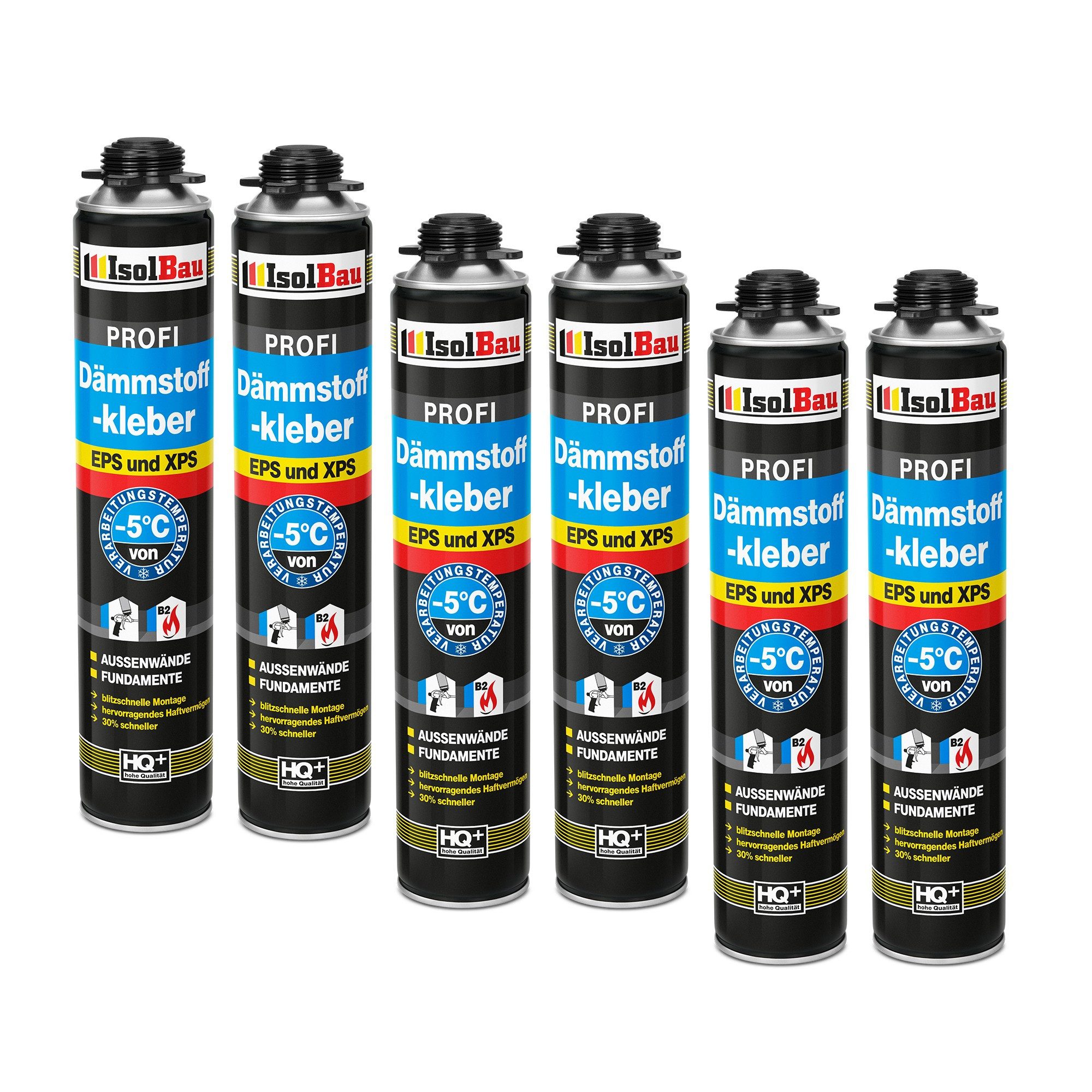IsolBau PROFI Dämmstoffkleber ist ein spezieller gebrauchsfertiger, schwach expandierender 1K-Polyurethankleber. Hat hervorragende Schall, Klebe- und Wärmedämmeigenschaften, einen niedrigen Aushärtedruck und eine geringe Nachdehnung. Der PROFI Dämmstoffkleber ist ideal zum Kleben von Polystyrolplatten (EPS und XPS), PUR und PIR Platten in Wärmedämmsystemen für Gebäude nach der BSO-Methode (leicht nass), WDVS-Wärmedämmverbundsystem, bei Wärmeisolierung von Fundamenten und bodennahen Gebäudeteilen, Kellern etc., Konzipiert zum Verkleben aller Dämmstoffe auf verschiedenen Bauuntergründen. Haftet sehr gut auf unterschidlichen Materialien, wie Polystyrol, Gipsplatten, Holz, Beton, Bitumen, Stein, Metall und PVC. Für Anwendungen im Erdreich geeignet, da er nach dem Aushärten verrottungsfest und feuchtigkeitsbeständig ist. Hohe Ausbeute von freigeschäumt bis zu 45 l - ermöglicht die Verklebung bis zu 12 m² Wandfläche. Die Verarbeitung mit dem System Pistole und Dose bringt einen Zeitvorteil von ca. 30 %. Zwei Stunden nach dem Verkleben können die Platten geschliffen und verdübelt werden.