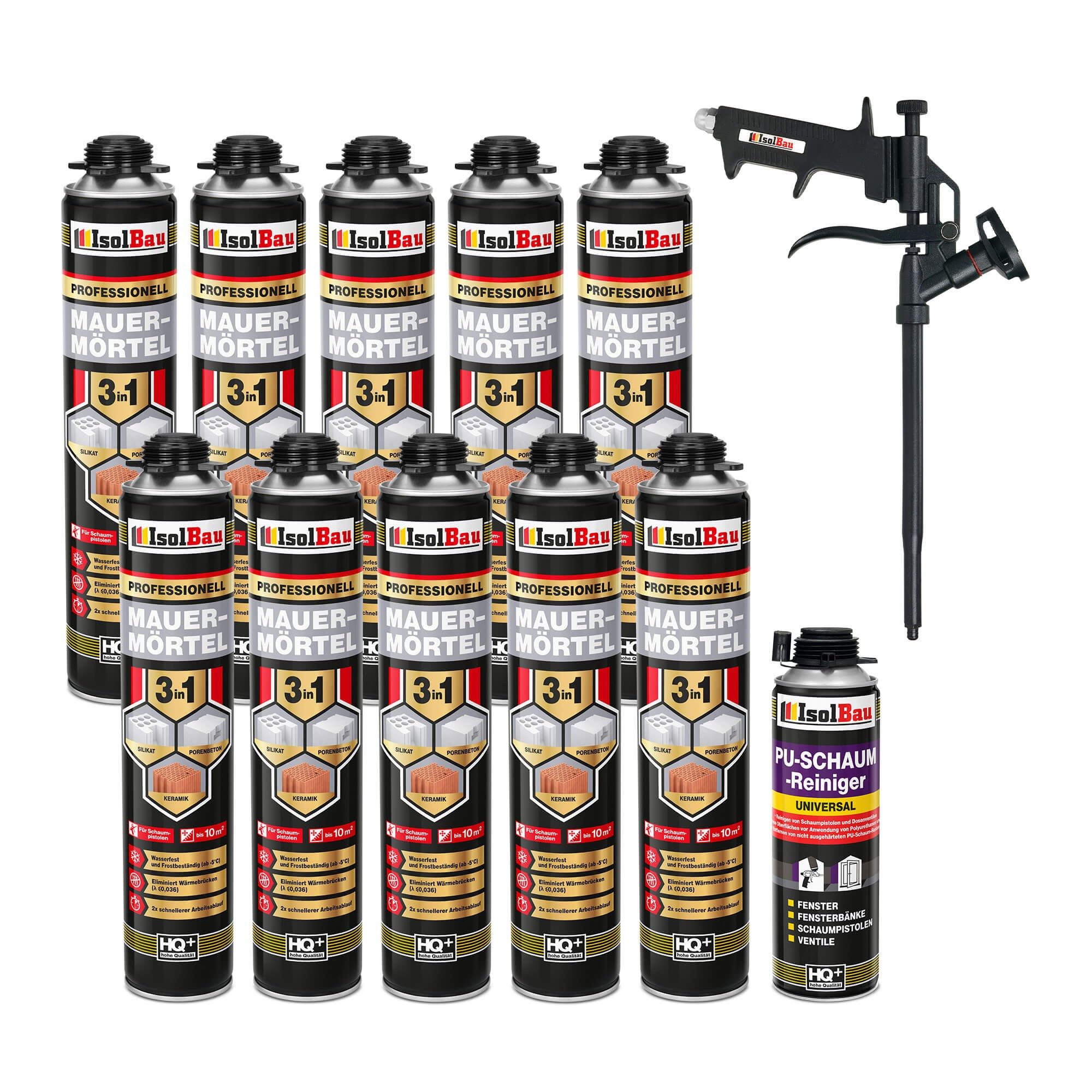 Professioneller Mauermörtel 10 x 750 ml + Teflon schaumpistole + PU Reiniger 500 ml