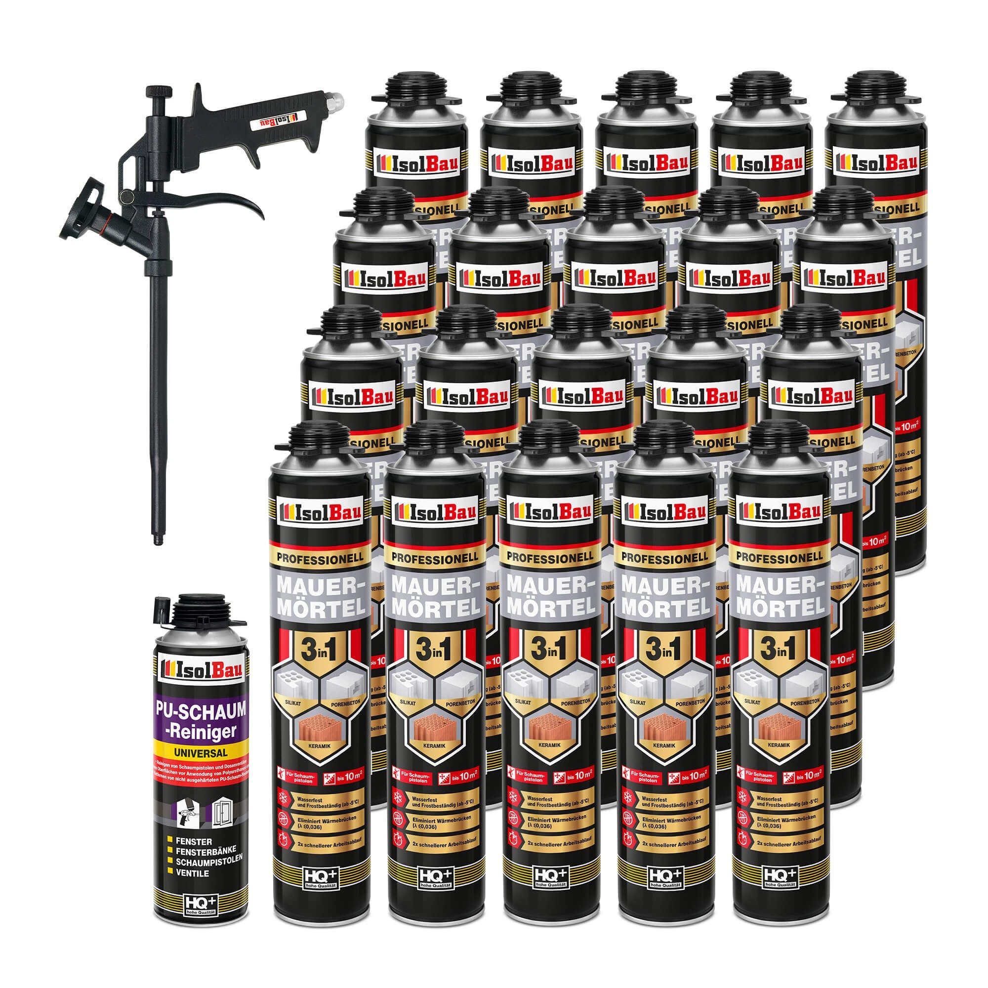 Professioneller Mauermörtel 20 x 750 ml + Teflon schaumpistole + PU Reiniger 500 ml