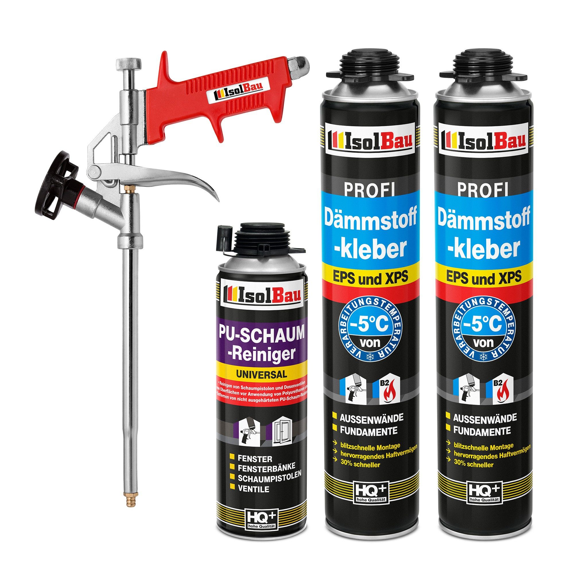 IsolBau PROFI Dämmstoffkleber ist ein spezieller gebrauchsfertiger, schwach expandierender 1K-Polyurethankleber. Hat hervorragende Schall, Klebe- und Wärmedämmeigenschaften, einen niedrigen Aushärtedruck und eine geringe Nachdehnung. Der PROFI Dämmstoffkleber ist ideal zum Kleben von Polystyrolplatten (EPS und XPS), PUR und PIR Platten in Wärmedämmsystemen für Gebäude nach der BSO-Methode (leicht nass), WDVS-Wärmedämmverbundsystem, bei Wärmeisolierung von Fundamenten und bodennahen Gebäudeteilen, Kellern etc., Konzipiert zum Verkleben aller Dämmstoffe auf verschiedenen Bauuntergründen. Haftet sehr gut auf unterschidlichen Materialien, wie Polystyrol, Gipsplatten, Holz, Beton, Bitumen, Stein, Metall und PVC. Für Anwendungen im Erdreich geeignet, da er nach dem Aushärten verrottungsfest und feuchtigkeitsbeständig ist. Hohe Ausbeute von freigeschäumt bis zu 45 l - ermöglicht die Verklebung bis zu 12 m² Wandfläche. Die Verarbeitung mit dem System Pistole und Dose bringt einen Zeitvorteil von ca. 30 %. Zwei Stunden nach dem Verkleben können die Platten geschliffen und verdübelt werden.