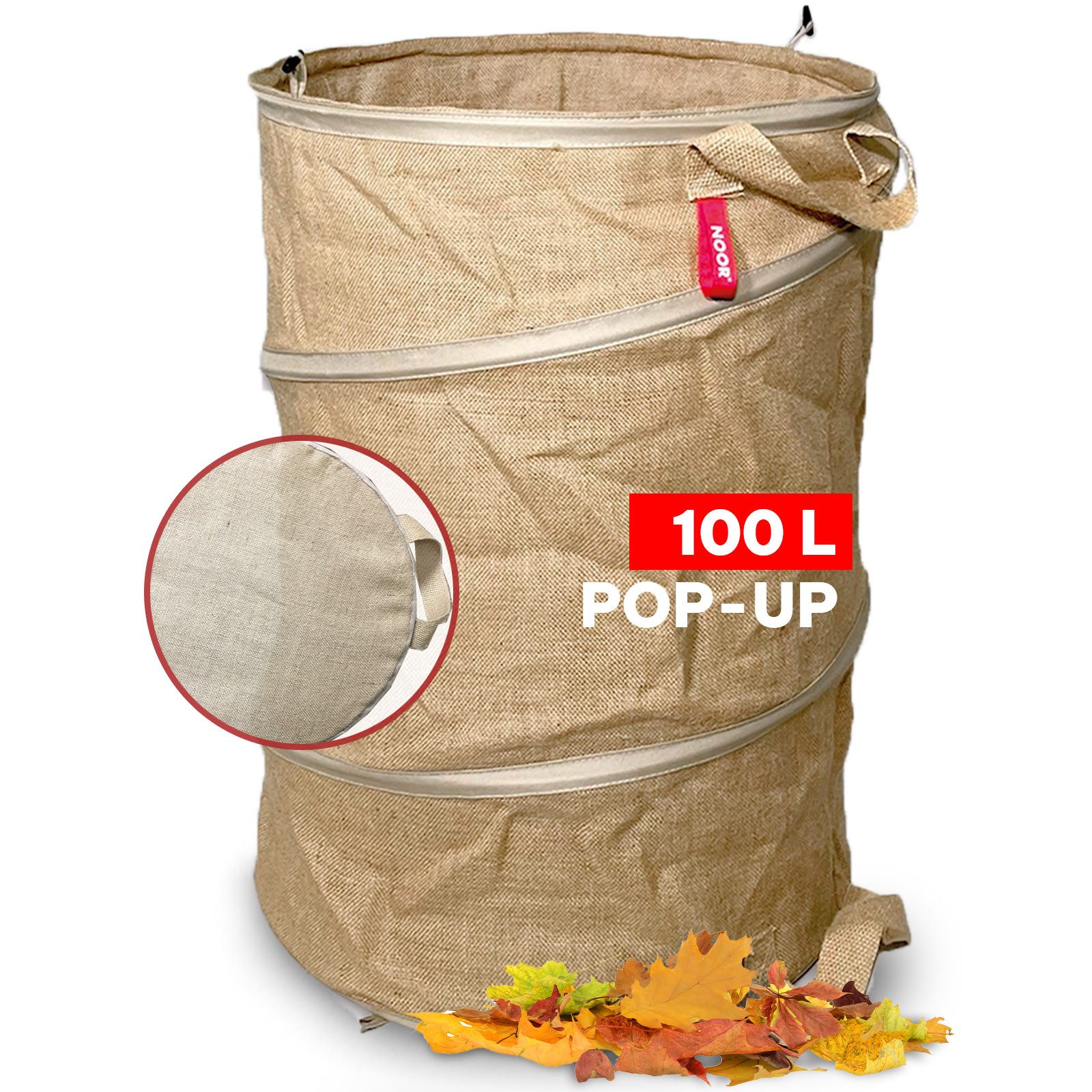Der Gartenabfallsack POP-UP in den beiden Farben Grün und Jute ist die ideale Lösung für Ihre Gartenabfälle! Denn im Garten von Heimwerkern und Hobbygärtnern fallen so einige Abfälle an, die zur Abholung zwischengelagert werden müssen. Ob für Heckenschnitt, Heu, Laub, Graszuschnitte und viel mehr - im universellen Gartenabfallsack POP-UP findet sich für alle Abfälle Platz. Sogar nasses Grünzeug oder schmutziges Laub kann POP-UP leicht aufnehmen, ohne Ihre Kleidung zu verschmutzen. Der Gartensack wartet stabil auf dem Boden, auch wenn er noch leer ist. Außerdem bleibt er dank der eingebauten Pop-up-Feder standfest. Machen Sie sich also ab heute keinerlei Gedanken mehr über die Entsorgung Ihres Gartenabfalls. POP-UP besteht aus stark belastbarem, beschichtetem PP/PE Gewebe, teils mit Verstärkungsreifen für einen sicheren Stand, ausgestattet mit Tragegriffen und Entleerungslaschen für eine rundum leichtere Handhabung. Das Produkt lässt sich problemlos ausspülen, abwischen und wiederverwenden. Mit POP-UP sind Sie bestens auf die nächste Gartenarbeit vorbereitet - denn mit einem Fassungsvermögen bis zu 200 Litern geht mit Sicherheit auch nichts daneben.
