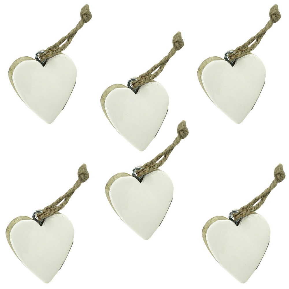 Deko Anhänger Herz aus Mangoholz mit weißer Glasierung