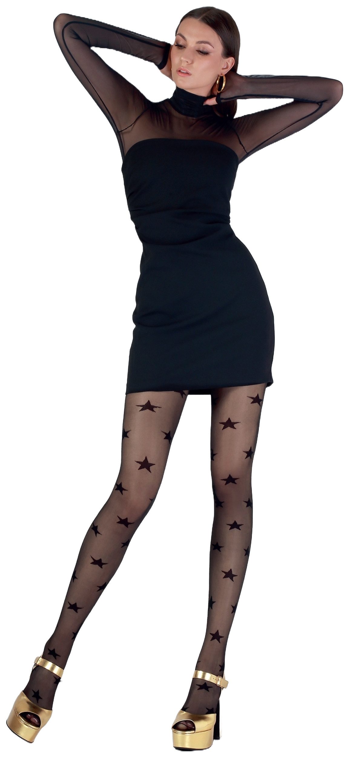 Die Strumpfhosen verzaubern mit ihrem wunderschönen Sternenmuster, das deinem Look das gewisse Etwas verleiht. Dank ihrer transparenten Struktur kommen diese schwarzen Strümpfe besonders gut in Kombination mit einfarbigen Kleidern oder outfit-inspirierenden asymmetrischen Designs zur Geltung. Die feinen Sterne verleihen deinem Stil einen verspielten, doch eleganten Touch, der garantiert alle Blicke auf sich zieht.