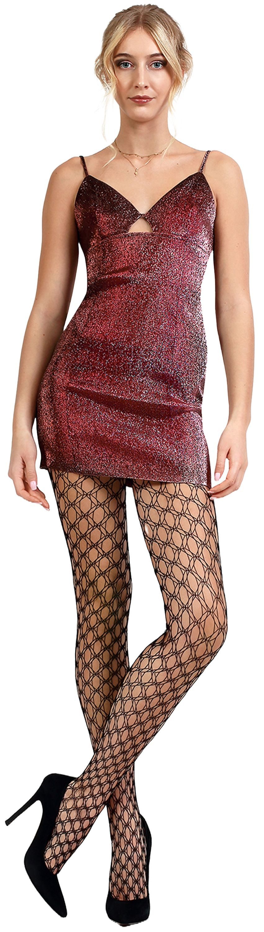 Die Cabarette-Strumpfhose für Damen präsentiert sich mit einem faszinierenden Netzgewebe und einem charakteristischen Muster, das eine rautenartige Textur aus Fäden bildet. Das Ergebnis ist ein kunstvolles Netz mit kleinen oder größeren Löchern, das die Beine auf eine besonders ansprechende Weise betont. In einer klassischen schwarzen Farbe gehalten, ist diese Strumpfhose vielseitig kombinierbar und ein Blickfang für Frauen, die ihre Individualität betonen möchten.