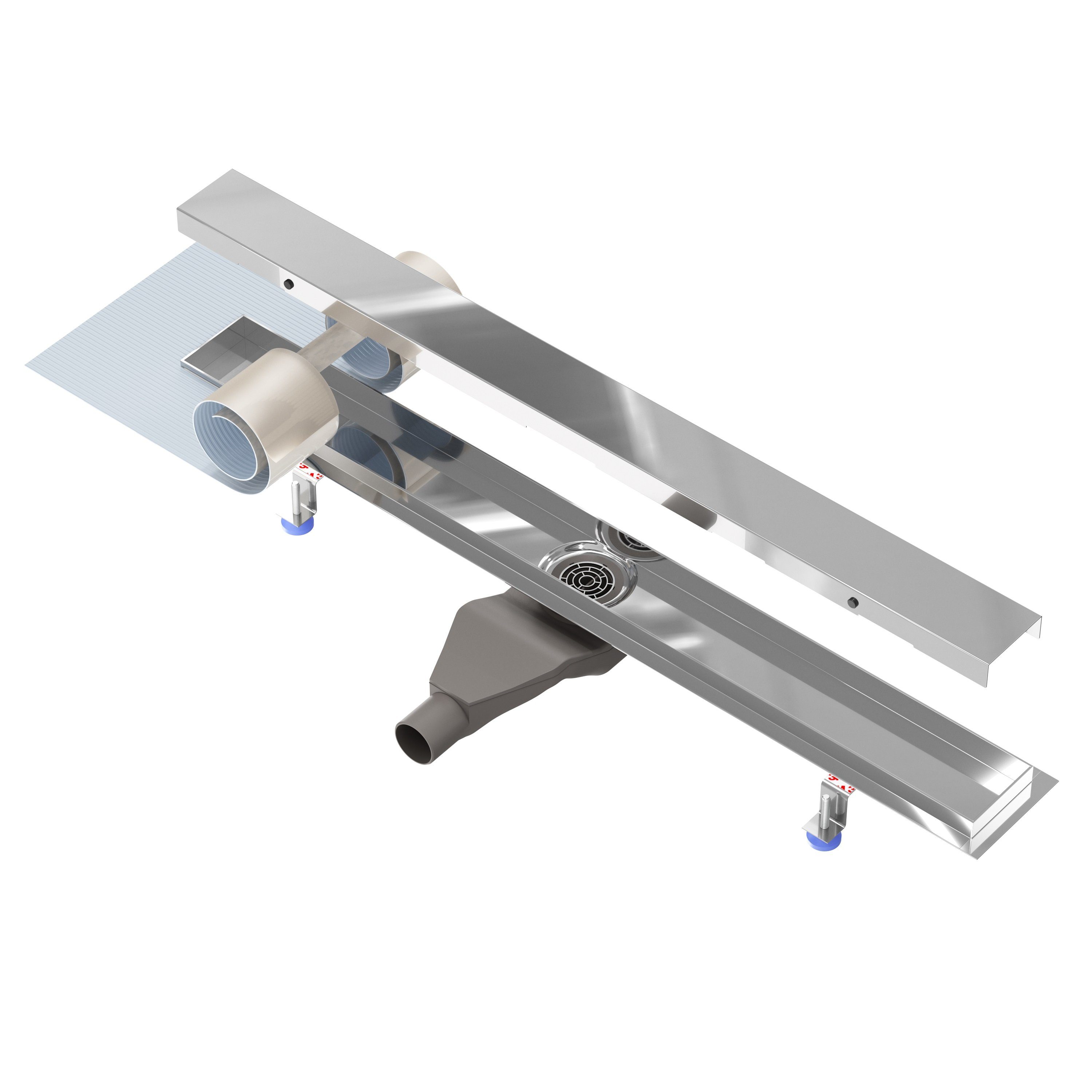 Lieferumfang | Hochglanz Duschrinnengrundkörper 60 cm Ablauf: Mittig, Niederprofil Ablaufgarnitur (6cm Einbautiefe), Haarsieb, Höhenverstellbare Montagefüße, Hebehaken zum komfortablen Herausnehmen der Blende, Selbstklebende Dichtmanschette / Dichtvlies, Bauzeitenschutz aus Styropor (zum Schutz der Duschrinne bei der Montage), Blende: Hochglanz Blende |