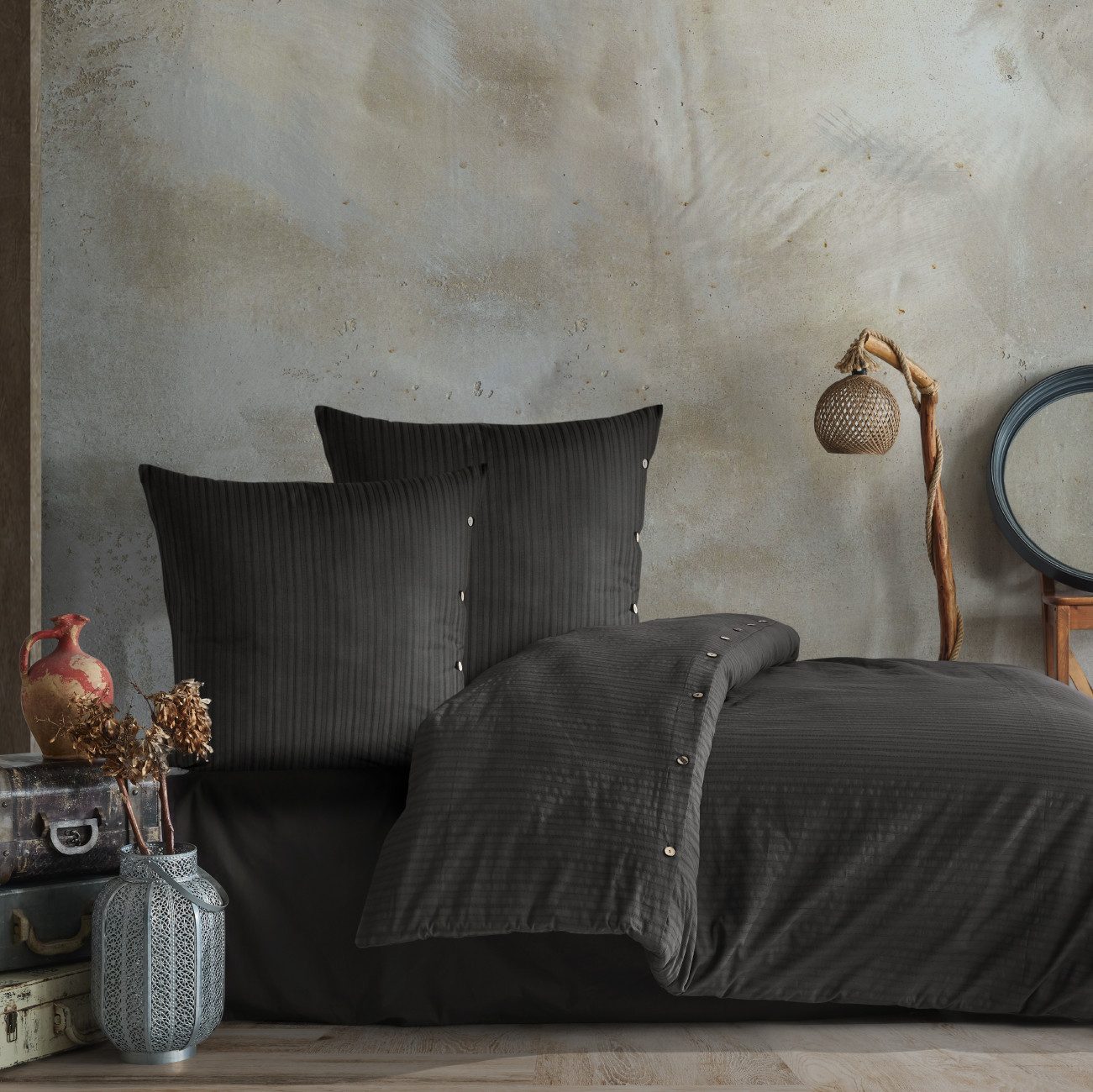 • In diesem Modell unserer Bettwäschesets sind drei Farben erhältlich: weißes Bettwäscheset, cremefarbenes Bettwäscheset und anthrazitfarbenes Bettwäscheset.