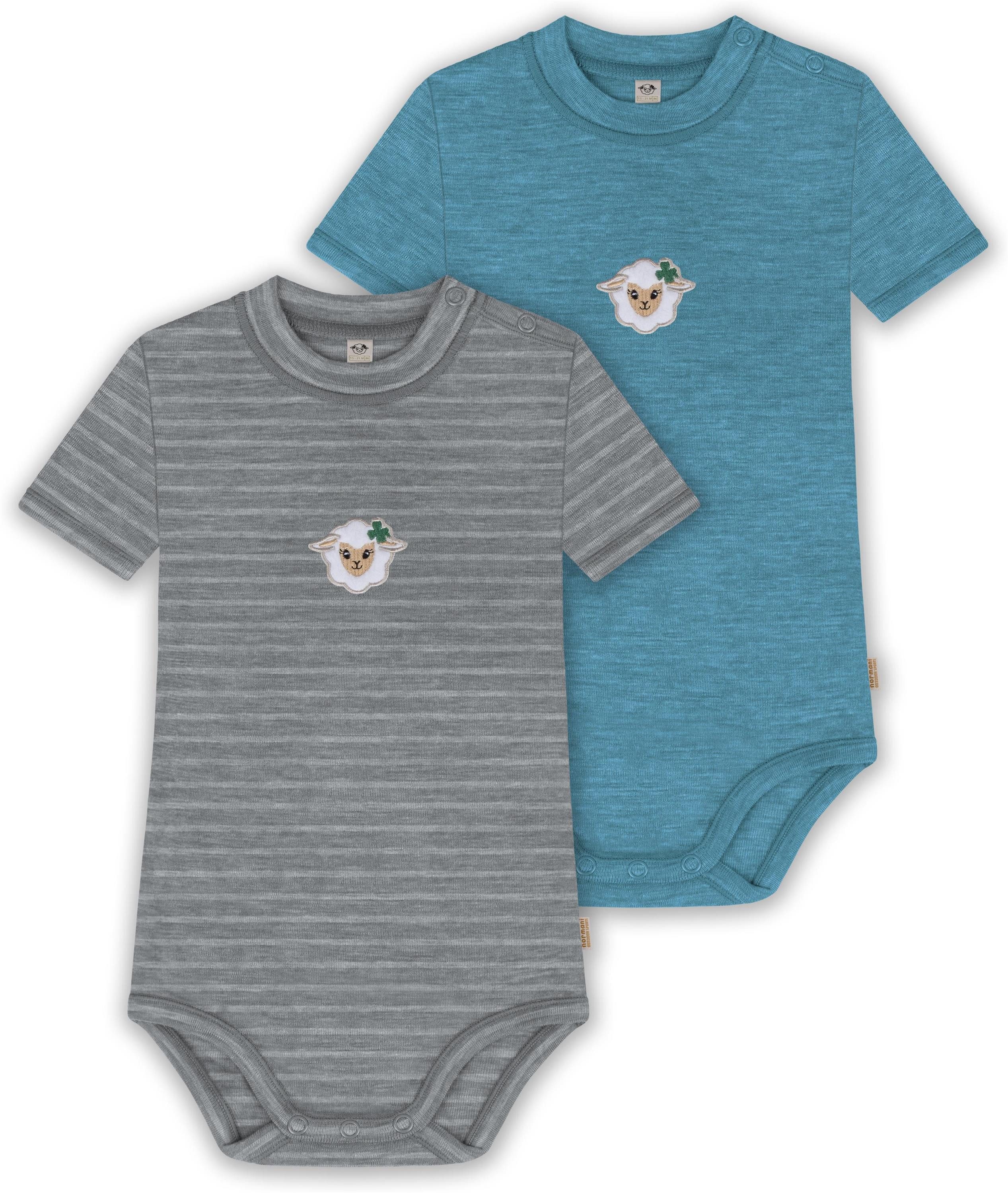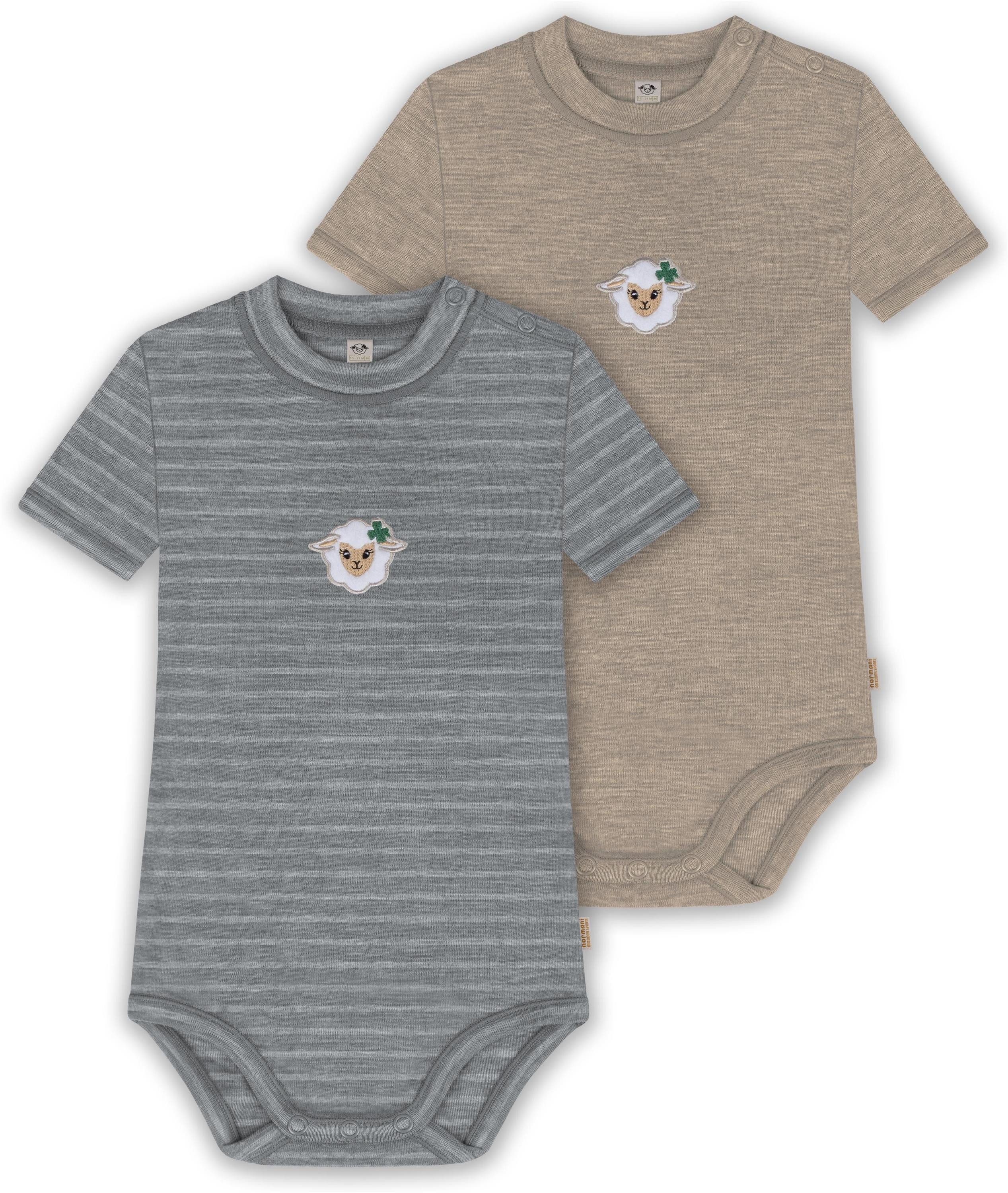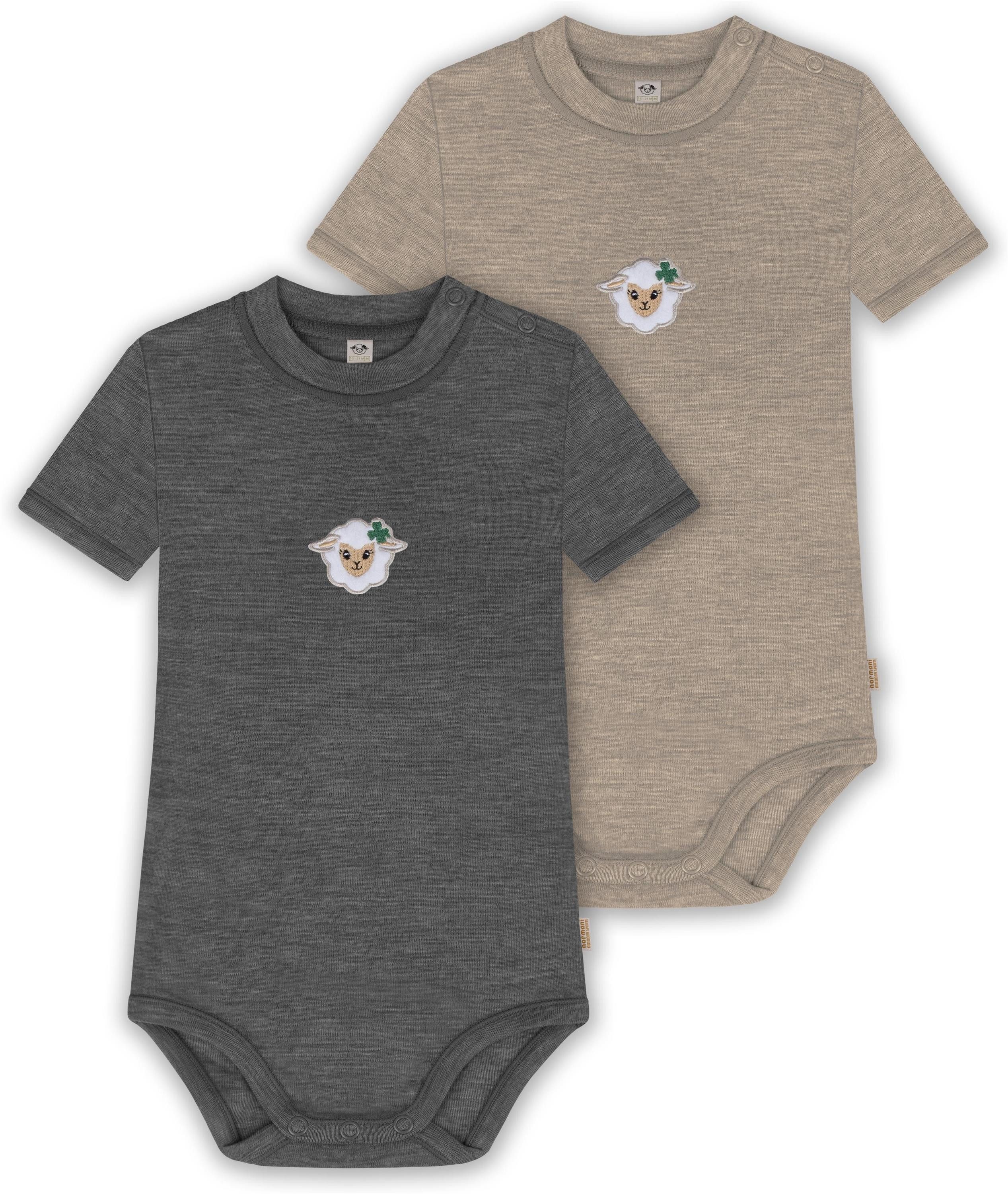 Unser Merino Kurzarm Body "Tihoi", im 2er Pack, ist mehr als nur ein einfacher Baby Body mit kurzen Ärmeln. Hinter seiner schlichten Erscheinung verbirgt sich ein Kleidungsstück, das sich perfekt für alle Wetterbedingungen eignet. Mit einer Grammatur von 200 g/m² bietet dieser Body eine optimale Wärmeisolierung, die ihn im Winter zur idealen wärmenden Schicht unter weiterer Kleidung macht. Auch im Sommer kann der Body wegen seiner natürlichen Thermoregulierung einzeln getragen werden. Die Wärmeregulierung und Atmungsaktivität der Merinowolle ermöglichen es Ihrem Baby, den Body den ganzen Tag über zu tragen – sei es beim Spielen oder beim Nickerchen. Die weiche Merinowolle ist besonders sanft zur empfindlichen Haut Ihres Babys und verursacht keine Hautirritationen. Zudem ist die Merinofaser geruchsneutralisierend, sodass der Body auch nach mehrmaligem Tragen frisch bleibt. Die Elastizität der Merinowolle sorgt für maximale Bewegungsfreiheit beim Spielen. Darüber hinaus ist der Body mit hochwertigen Marken-Druckknöpfen von YKK an den Schultern und zwischen den Beinen ausgestattet. Diese gewährleisten ein zuverlässiges Öffnen und Спрятать und erleichtern das Wickeln und Umziehen. Abgerundet wurde der Body mit einem kindgerechtem, flauschigem Schaf Stick, der als Eyecatcher dient.