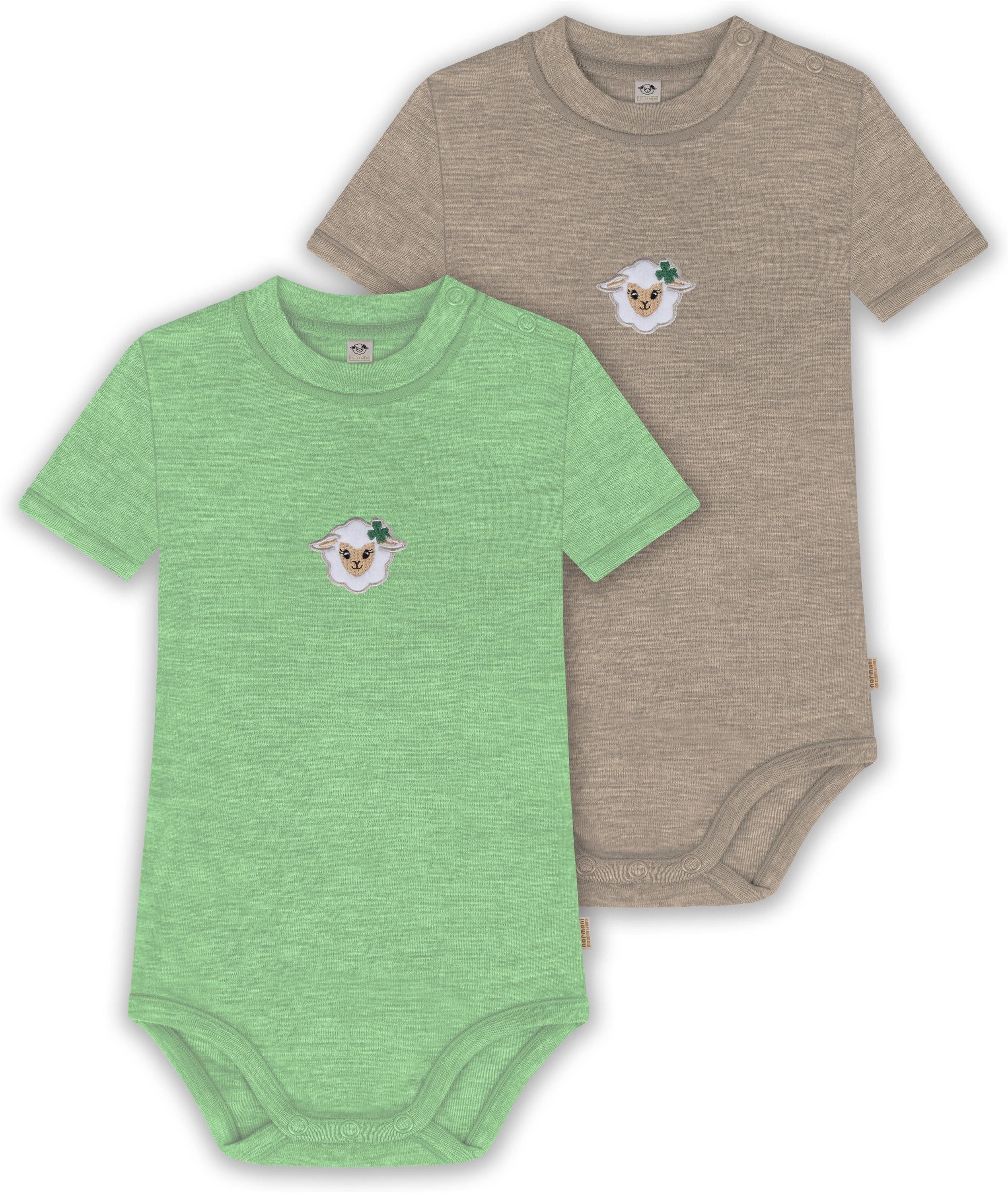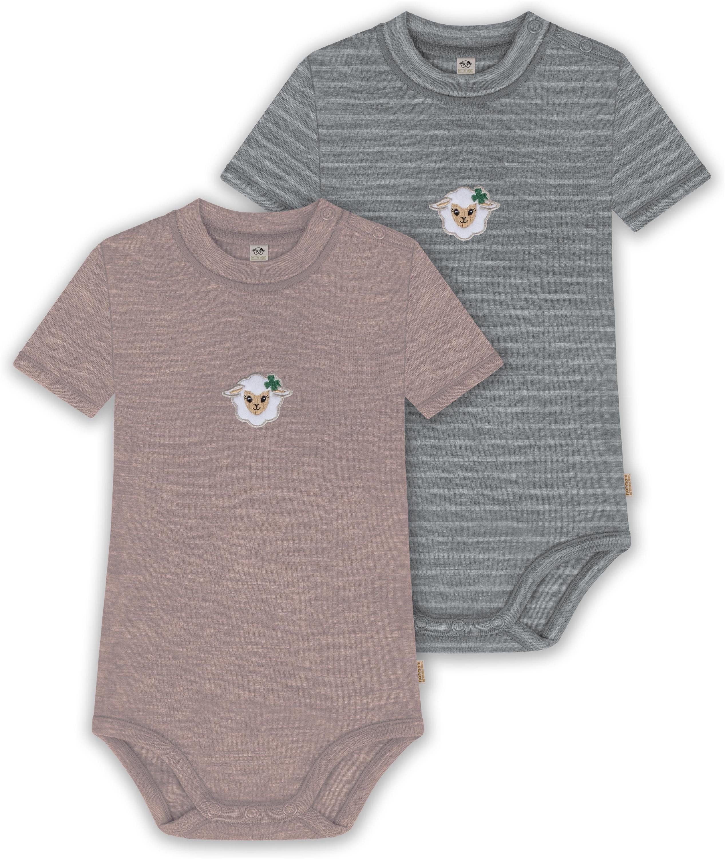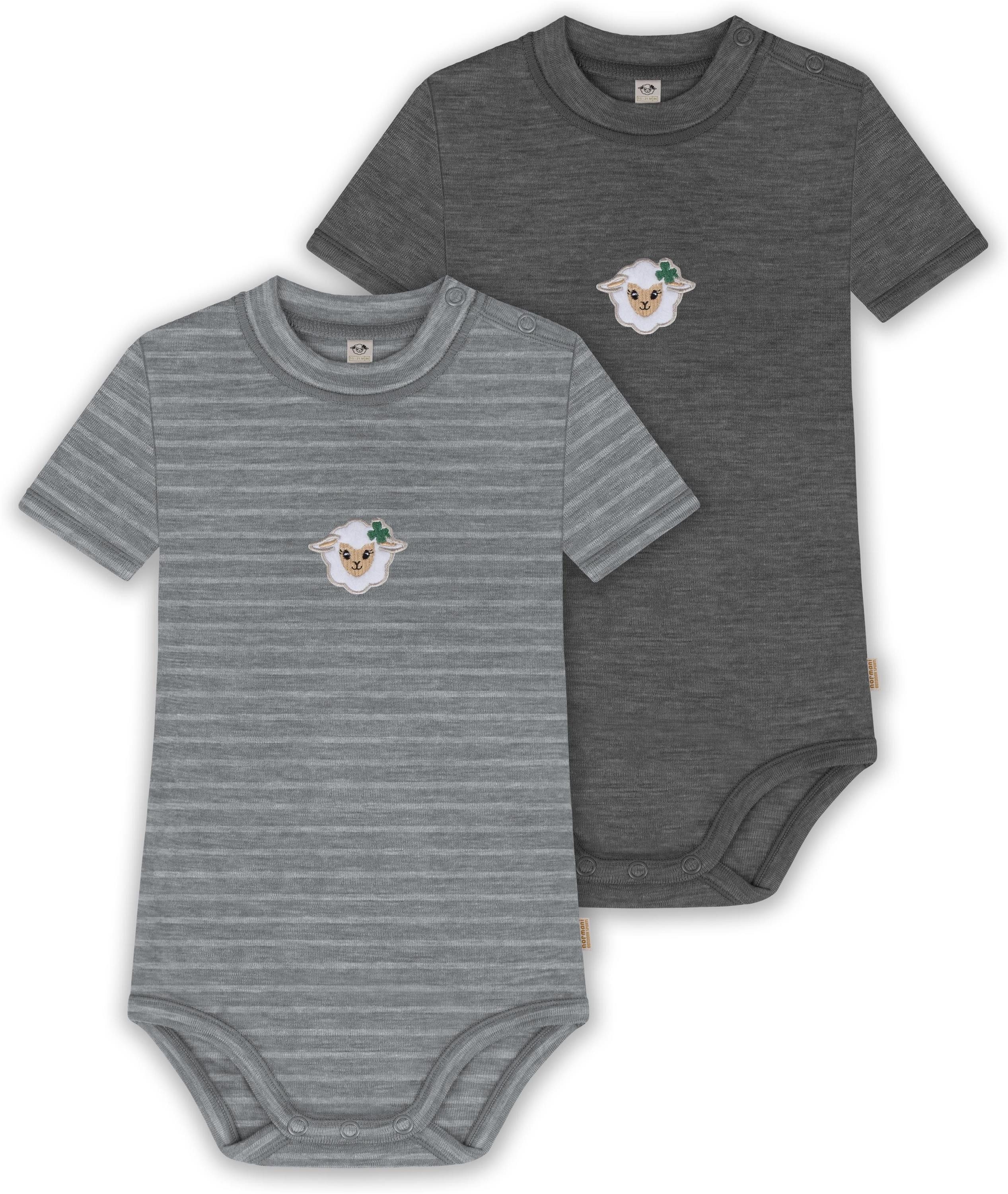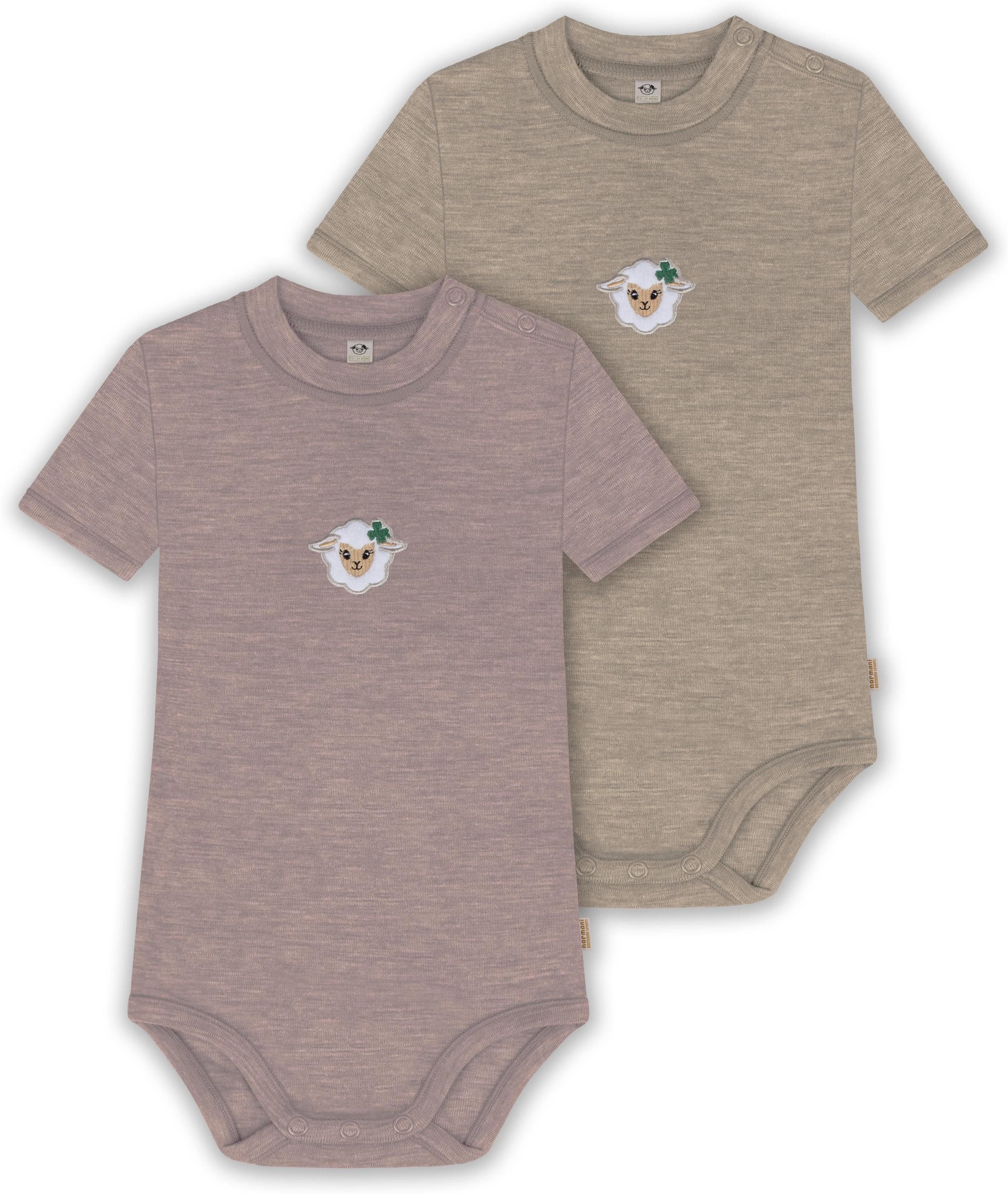 Unser Merino Kurzarm Body "Tihoi", im 2er Pack, ist mehr als nur ein einfacher Baby Body mit kurzen Ärmeln. Hinter seiner schlichten Erscheinung verbirgt sich ein Kleidungsstück, das sich perfekt für alle Wetterbedingungen eignet. Mit einer Grammatur von 200 g/m² bietet dieser Body eine optimale Wärmeisolierung, die ihn im Winter zur idealen wärmenden Schicht unter weiterer Kleidung macht. Auch im Sommer kann der Body wegen seiner natürlichen Thermoregulierung einzeln getragen werden. Die Wärmeregulierung und Atmungsaktivität der Merinowolle ermöglichen es Ihrem Baby, den Body den ganzen Tag über zu tragen – sei es beim Spielen oder beim Nickerchen. Die weiche Merinowolle ist besonders sanft zur empfindlichen Haut Ihres Babys und verursacht keine Hautirritationen. Zudem ist die Merinofaser geruchsneutralisierend, sodass der Body auch nach mehrmaligem Tragen frisch bleibt. Die Elastizität der Merinowolle sorgt für maximale Bewegungsfreiheit beim Spielen. Darüber hinaus ist der Body mit hochwertigen Marken-Druckknöpfen von YKK an den Schultern und zwischen den Beinen ausgestattet. Diese gewährleisten ein zuverlässiges Öffnen und Спрятать und erleichtern das Wickeln und Umziehen. Abgerundet wurde der Body mit einem kindgerechtem, flauschigem Schaf Stick, der als Eyecatcher dient.