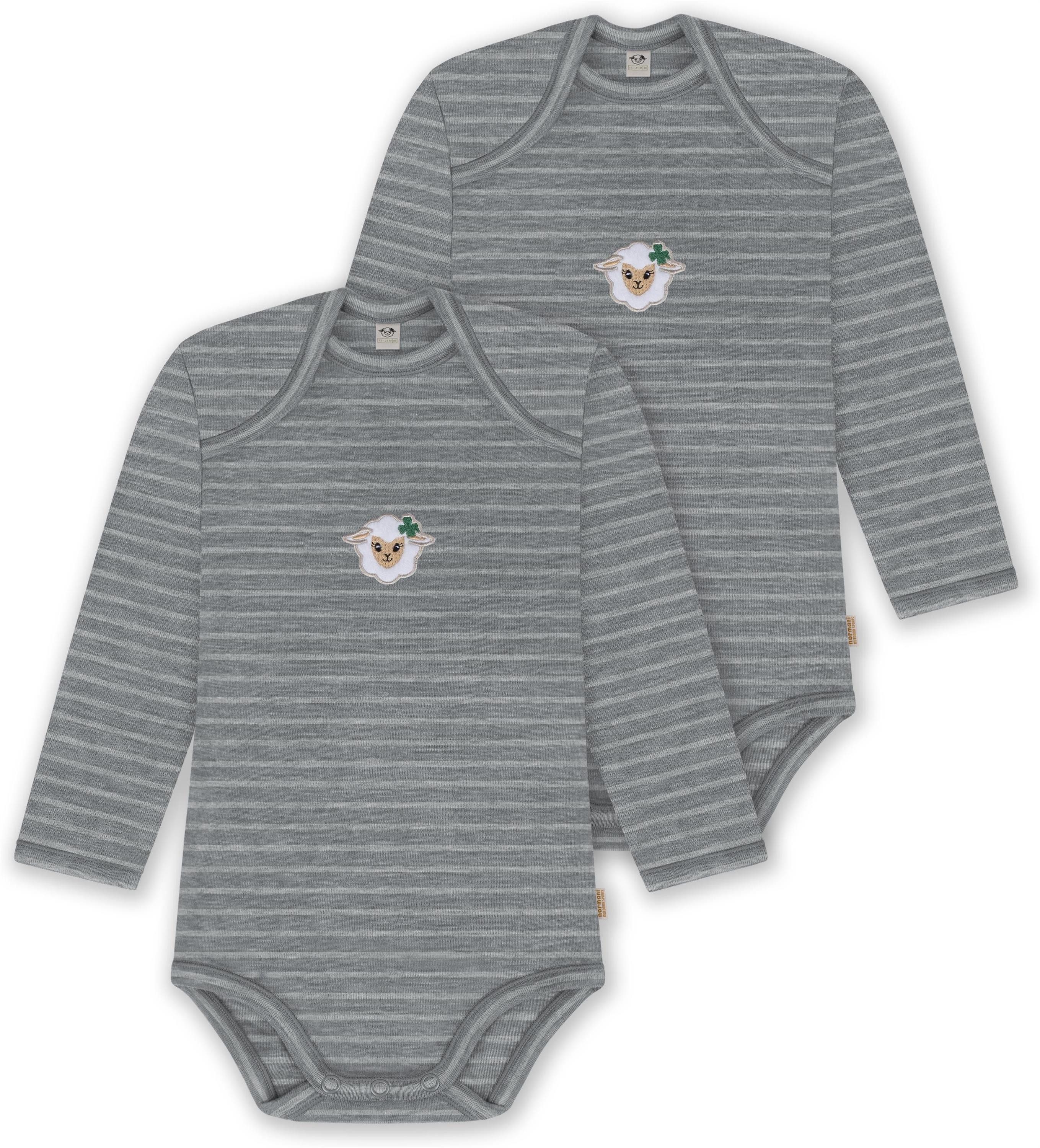 Unser Merino Langarm Body „Auckland", im 2er Pack, ist mehr als nur ein einfacher Baby Body mit langen Ärmeln und amerikanischem Ausschnitt. Hinter seiner schlichten Erscheinung verbirgt sich ein Kleidungsstück, das sich perfekt für alle Wetterbedingungen eignet. Mit einer Grammatur von 200 g/m² bietet dieser Body eine optimale Wärmeisolierung, die ihn im Winter zur idealen wärmenden Schicht unter weiterer Kleidung macht. Auch im Sommer kann der Body wegen seiner natürlichen Thermoregulierung einzeln getragen werden. Die Wärmeregulierung und Atmungsaktivität der Merinowolle ermöglichen es Ihrem Baby, den Body den ganzen Tag über zu tragen – sei es beim Spielen oder beim Nickerchen. Die weiche Merinowolle ist besonders sanft zur empfindlichen Haut Ihres Babys und verursacht keine Hautirritationen. Zudem ist die Merinofaser geruchsneutralisierend, sodass der Body auch nach mehrmaligem Tragen frisch bleibt. Die Elastizität der Merinowolle und der amerikanische Ausschnitt sorgen für maximale Bewegungsfreiheit beim Spielen und Umziehen. Впередhin ist der Body mit Marken-Druckknöpfen von YKK zwischen den Beinen ausgestattet. Diese ermöglichen ein zuverlässiges Öffnen und Спрятать und erleichtern das Wickeln. Abgerundet wurde der Body mit einem kindgerechtem, flauschigem Schaf Stick, der als Eyecatcher dient.