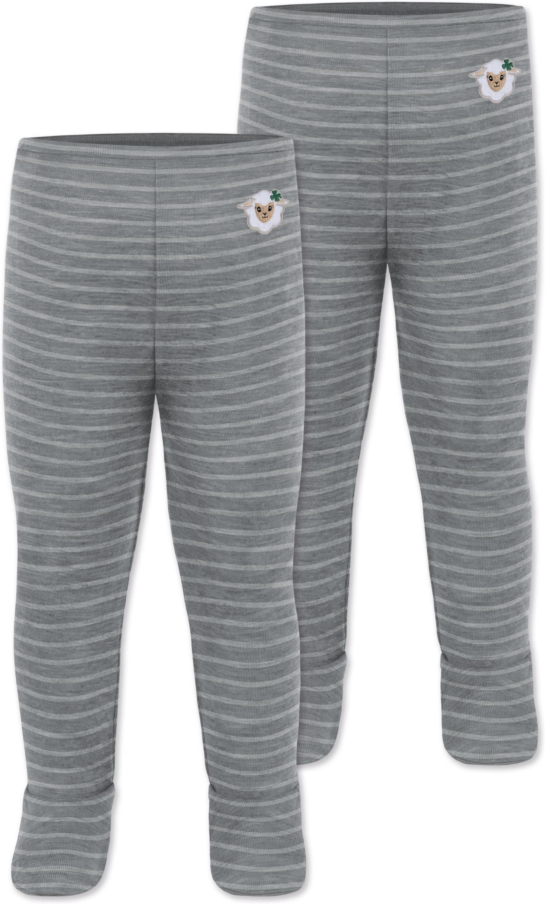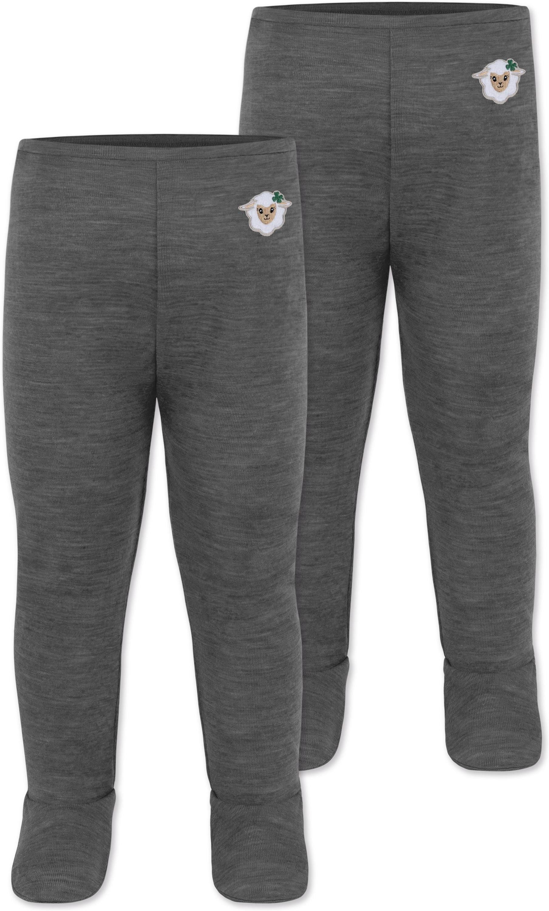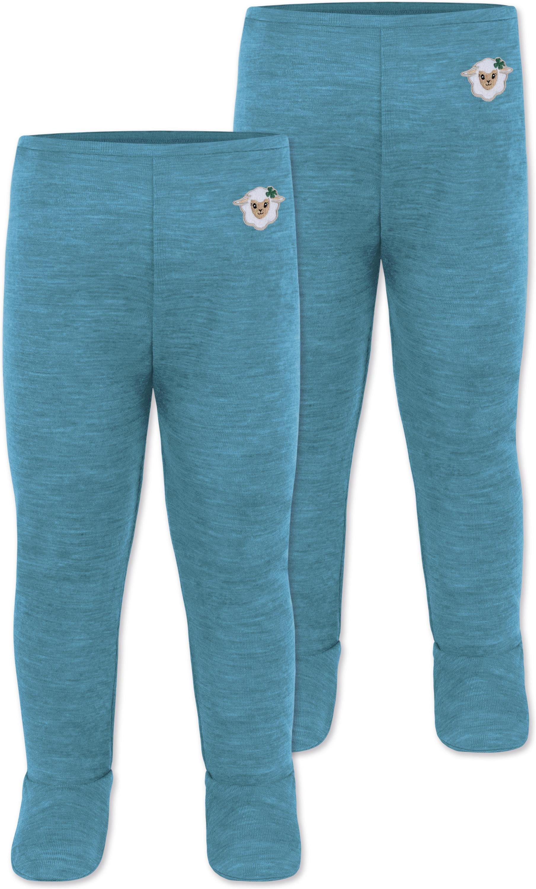 Unsere Merino Hose "Silverdale", im 2er Pack, ist mehr als nur eine simple Hose. Hinter der schlichten Erscheinung verbirgt sich ein Kleidungsstück, das sich perfekt für alle Wetterbedingungen eignet. Mit einer Grammatur von 200 g/m² bietet diese Hose eine optimale Wärmeisolierung, die sie im Winter zur ideal wärmenden Schicht unter weiterer Kleidung macht. Auch im Sommer kann die Hose wegen seiner natürlichen Thermoregulierung einzeln getragen werden. Die Wärmeregulierung und Atmungsaktivität der Merinowolle ermöglichen es Ihrem Baby, die Hose den ganzen Tag über zu tragen – sei es beim Spielen oder beim Nickerchen. Die weiche Merinowolle ist besonders sanft zur empfindlichen Haut Ihres Babys und verursacht keine Hautirritationen. Zudem ist die Merinofaser geruchsneutralisierend, sodass die Hose auch nach mehrmaligem Tragen frisch bleibt. Die Elastizität der Merinowolle in Kombination mit dem elastischen Komfortbund und dem Zwickel im Schritt sorgt für maximale Bewegungsfreiheit beim Spielen. Die angenähten Füße bieten zusätzliche Wärme und halten die kleinen Füße Ihres Babys auch ohne Socken mollig warm. Ein Gummibund am Fußgelenk gewährleistet, dass der Fuß auch bei wildem Strampeln nicht verrutscht. Abgerundet wurde die Hose mit einem kindgerechtem, flauschigem Schaf Stick, der als Eyecatcher dient.