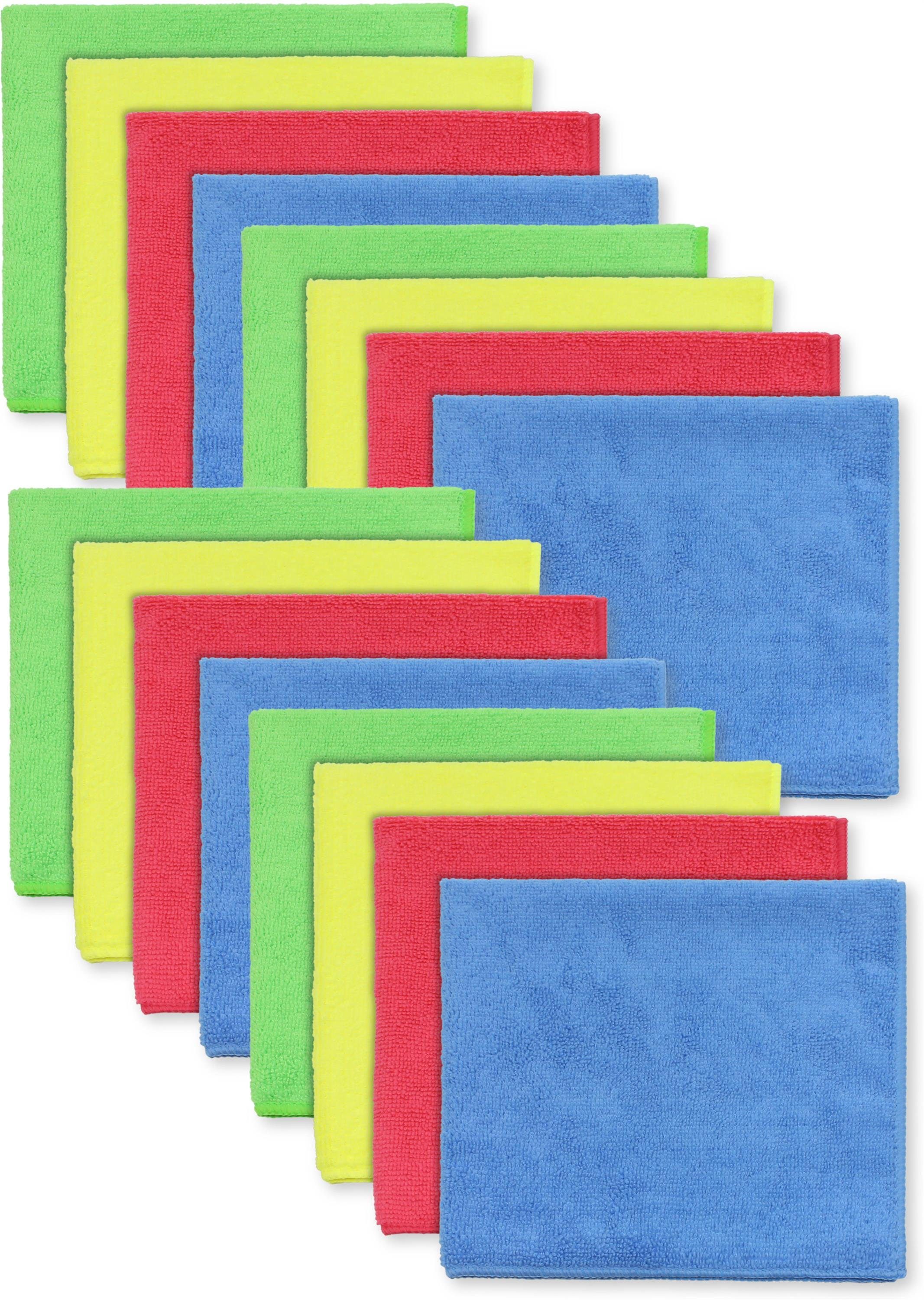 Premium Mikrofasertuch in Profi-Qualität Die Mikrofasertücher besitzen sehr feine Fasern und können daher äußerst wirksam und auf sanfte Weise den Schmutz binden. Die Mikrofasern reinigen streifenfrei wodurch ein perfektes Ergebnis garantiert ist. Das Tuch kann auch prima als Staubtuch eingesetzt werden, weil das Material beim Reinigen elektrostatisch aufgeladen wird und so Staubpartikel und Schmutz anzieht. Das Mikrofaser Putztuch ist besonders elastisch und strapazierfähig durch seine gestrickte Schlingenstruktur mit kurzen geschlossenen Schlingen. Der Saum sorgt für extra Formstabilität. Ein absolutes "Must Have" für die professionelle Reinigung. Das Reinigungstuch ist sehr saugfähig und prima einsetzbar in der täglichen Unterhaltsreinigung. Geeignet für alle gängigen Oberflächen und die universelle Unterhaltsreinigung. Überzeugendes Ergebnis sogar bei sehr schmutzigen und fettigen Oberflächen. Im Lieferumfang sind 4 Mikrofasertücher enthalten in vier gut unterscheidbaren Farben. Jede Farbe steht für einen Bereich. So wird vermieden, dass ein Tuch mit dem vorher die Toilette gesäubert wurde, zum Abstauben eines Schreibtisches verwendet wird und auf diesem Wege Keime von der Toilette auf Einrichtungsgegenstände übertragen werden. Bestens geeignet für Fett und wasserlösliche Verunreinigungen, ohne den Einsatz eines Reinigungsmittel, daher umweltschonend.