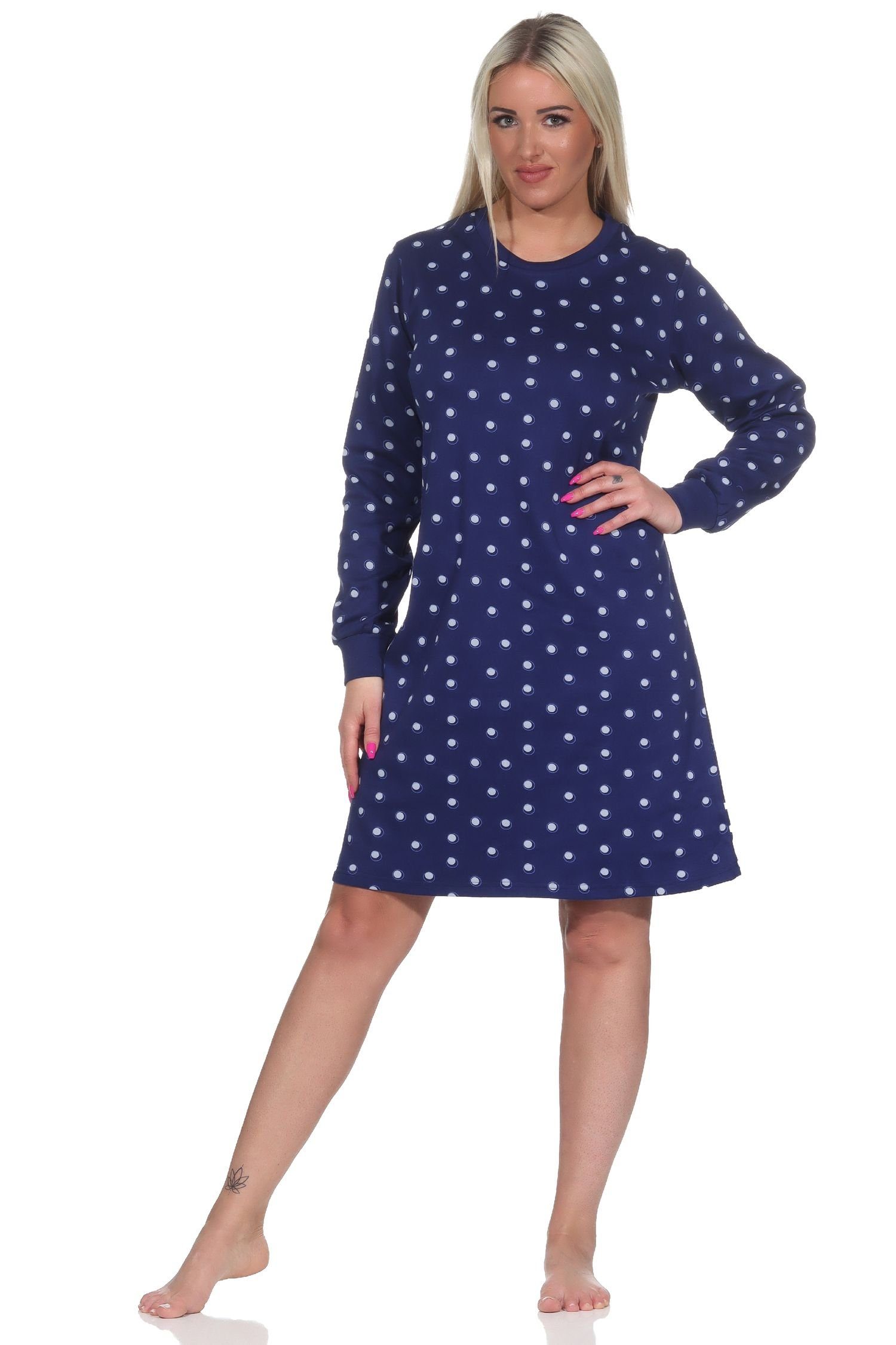 Damen langarm Nachthemd mit Bündchen in Kuschel Interlock Qualität in gepunkteter Optik
