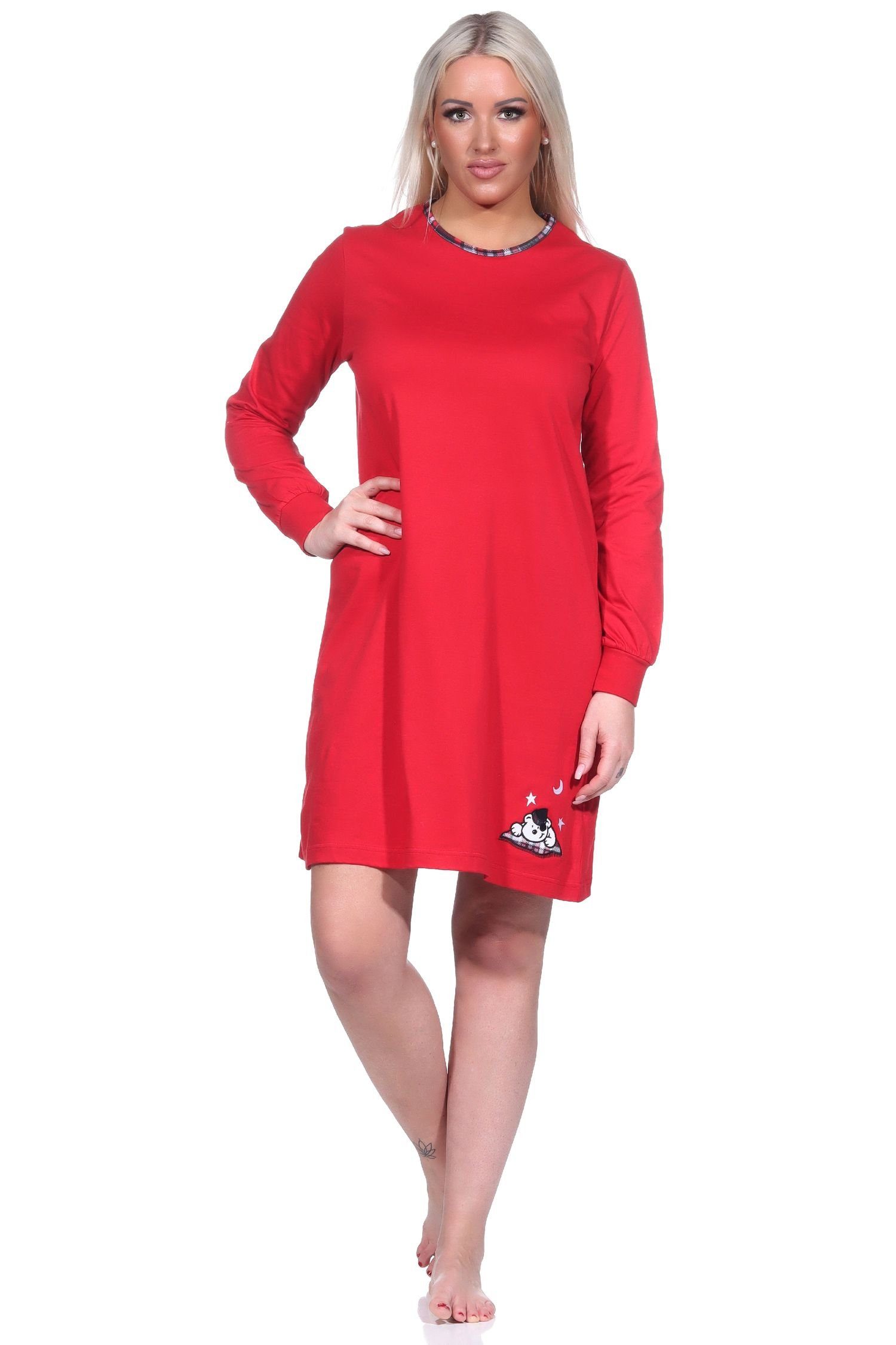 Niedliches Damen Nachthemd langarm mit einem süßem Tier als Motiv aus softem und weichem Single Jersey, Stoff, dadurch ist dieses schön bequem, weich und elastisch.