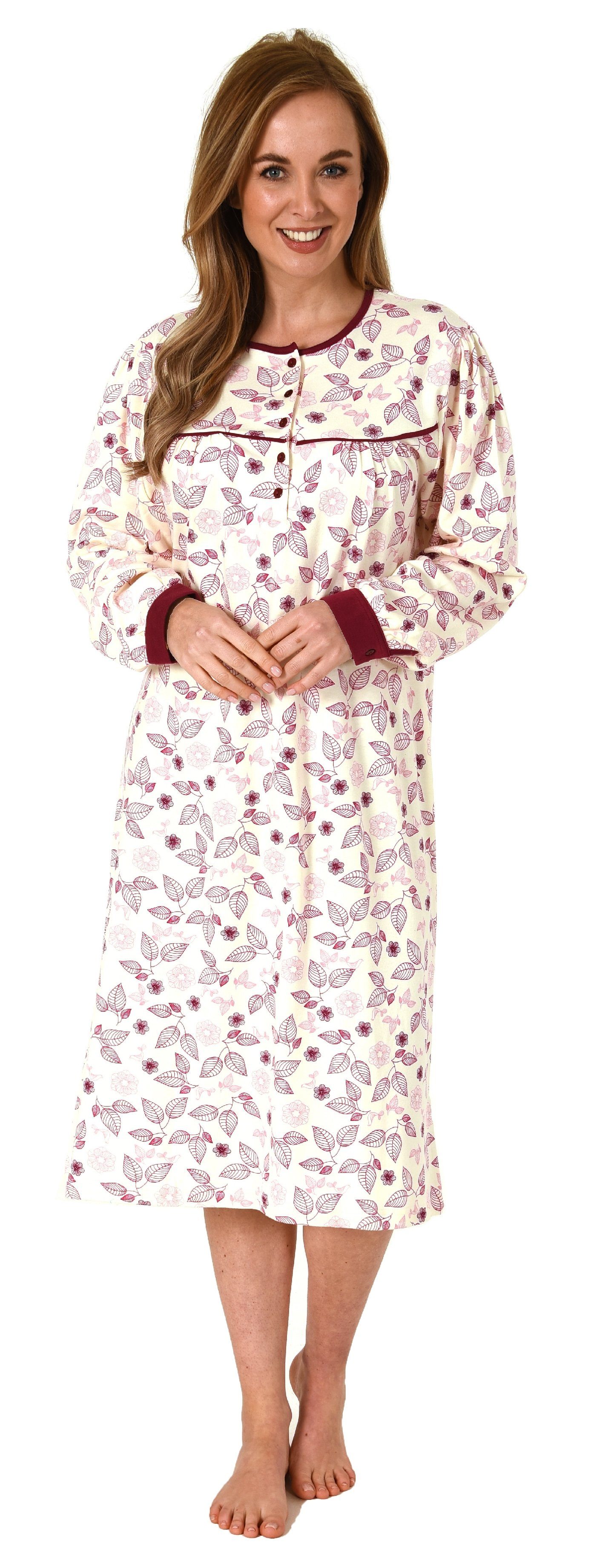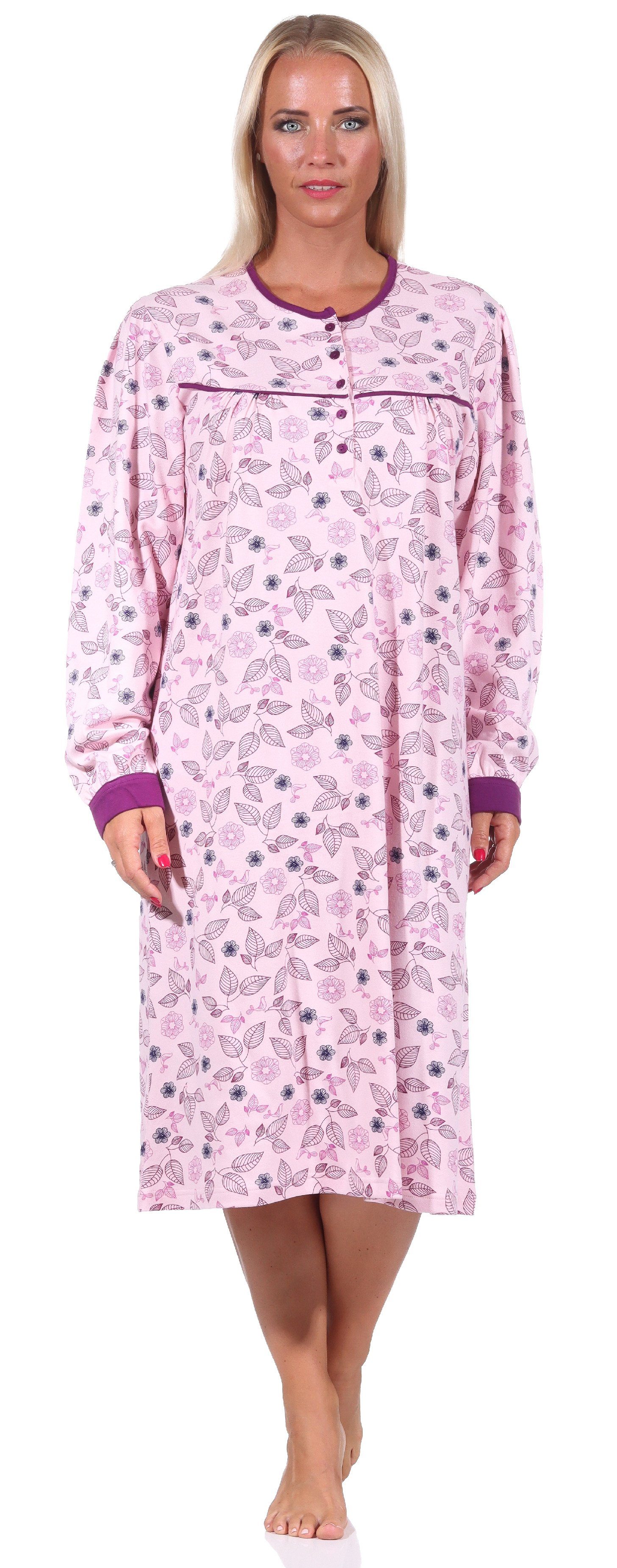 Dieses klassische frauliche Nachthemd in Kuschel-Interlock-Qualität ist 105 cm lang und hat einen wunderschönen Druck. Die Knopfleiste am Hals des Nachthemd sorgt für einen angenehmen Tragekomfort.