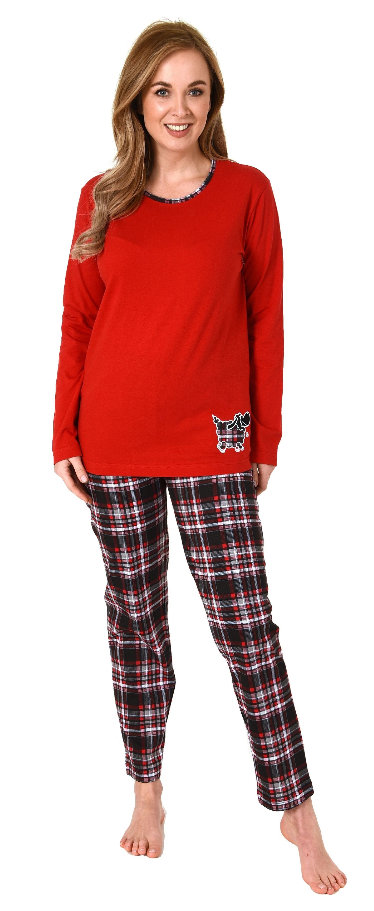 Damen Pyjama lang mit Karohose und süßem Tiermotiv - auch in Übergrössen - 212 201 90 820
