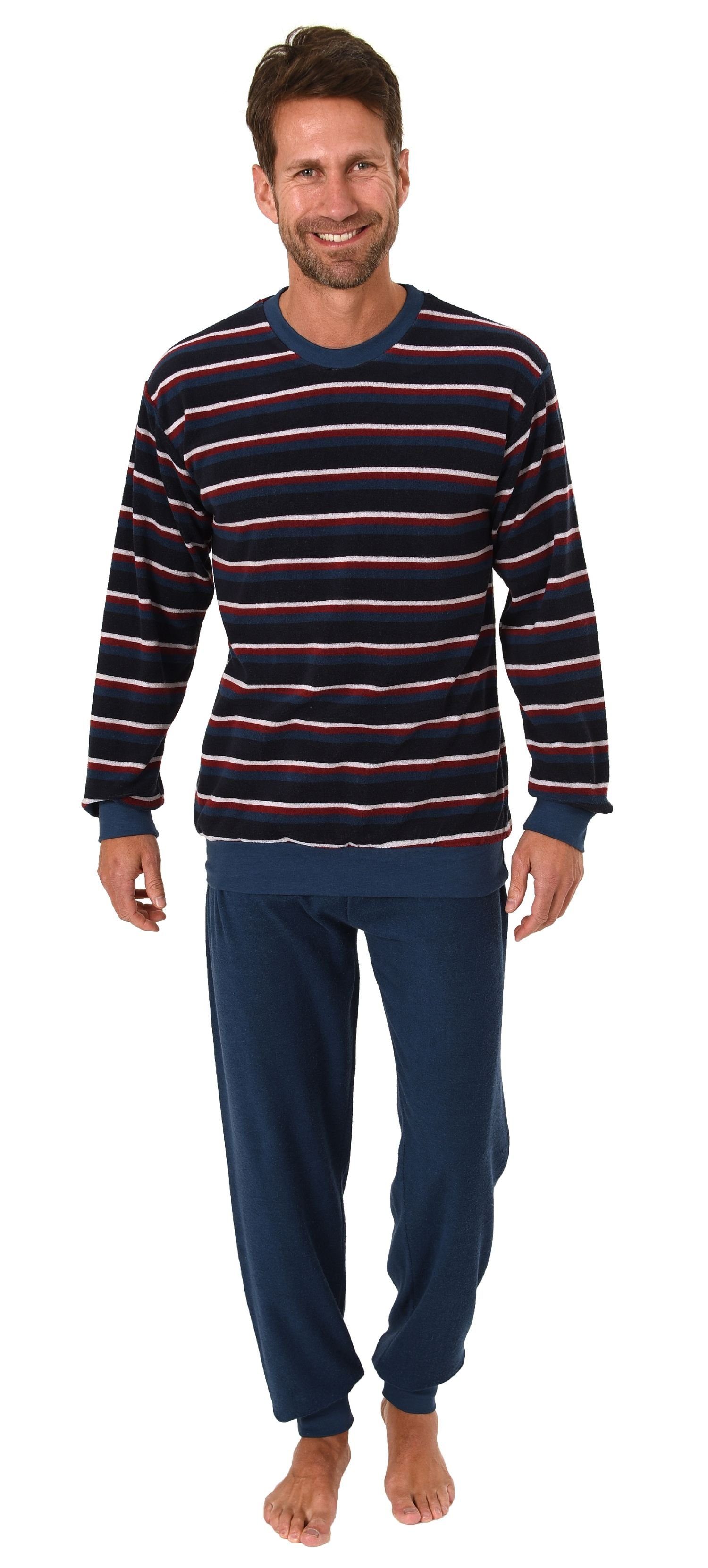 Herren Frottee Pyjama langarm Schlafanzug mit Bündchen in Streifenoptik - 291 101 13 578