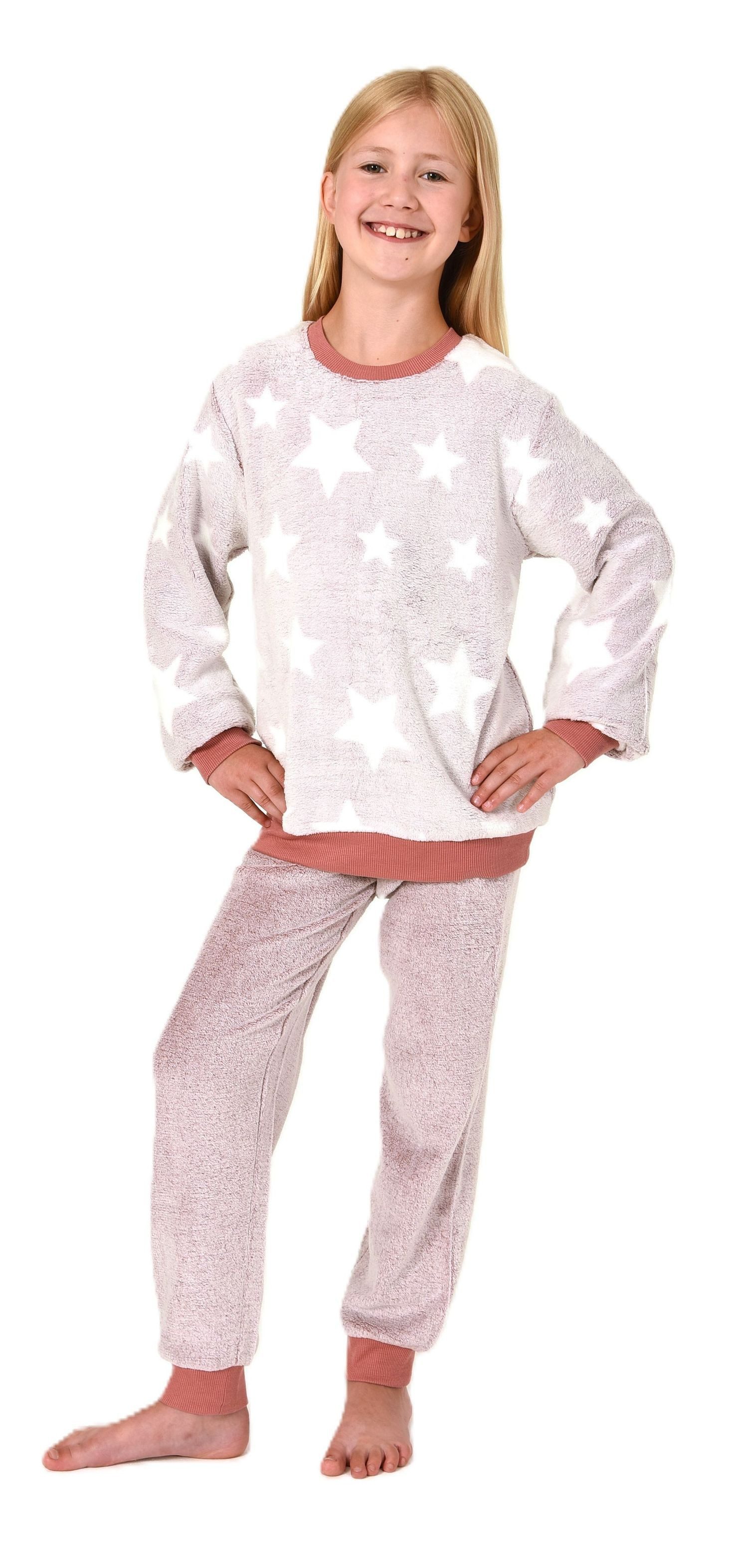 Kuschelig warmer Mädchen Schlafanzug Pyjama aus Coralfleece in Tupfen Optik