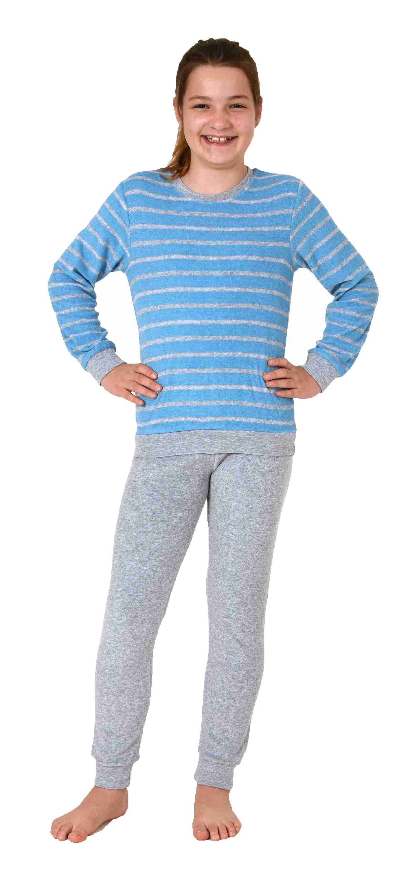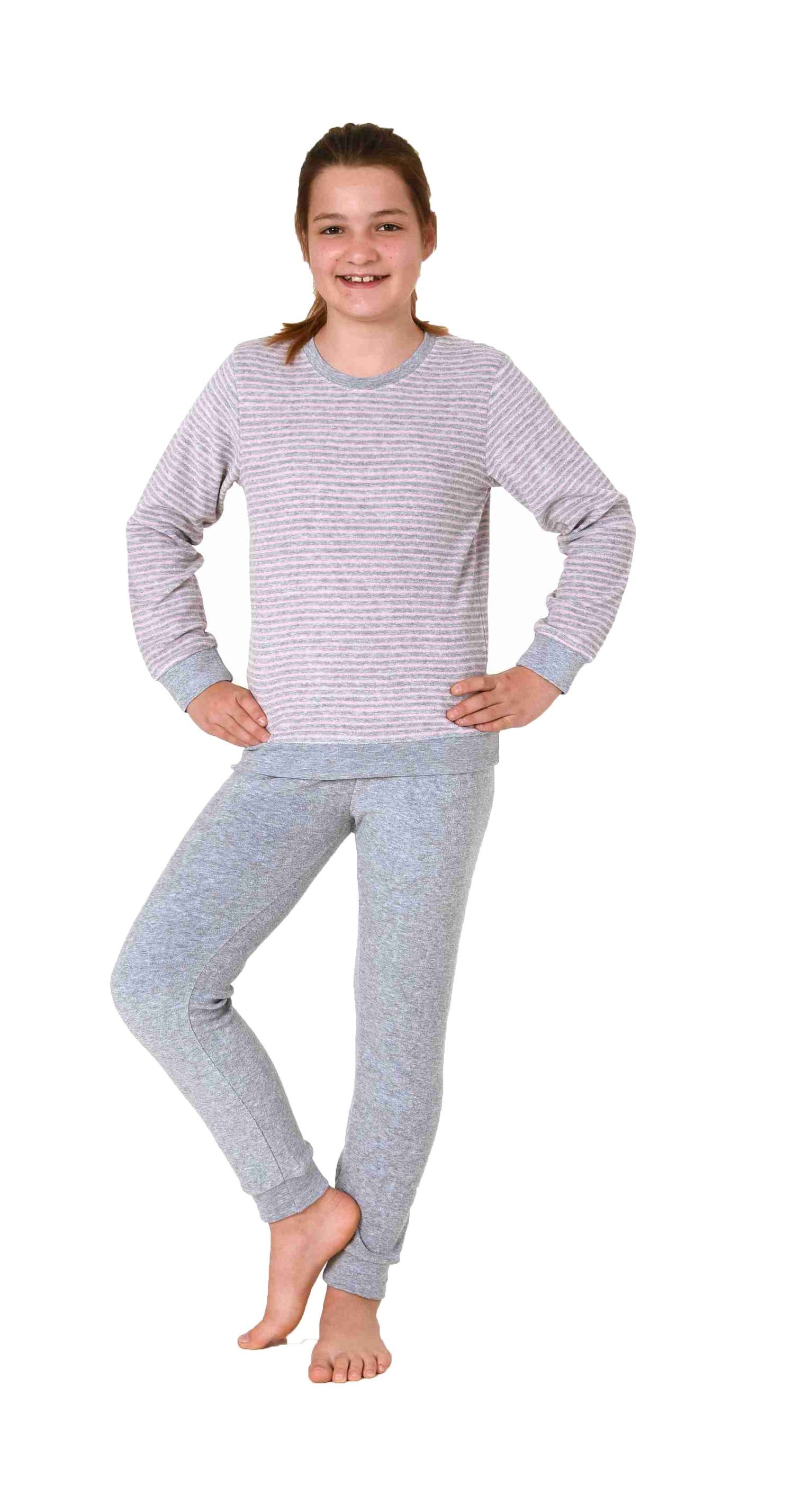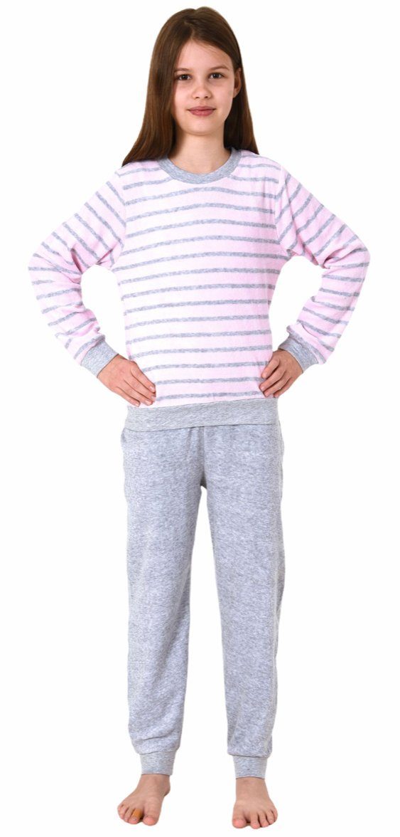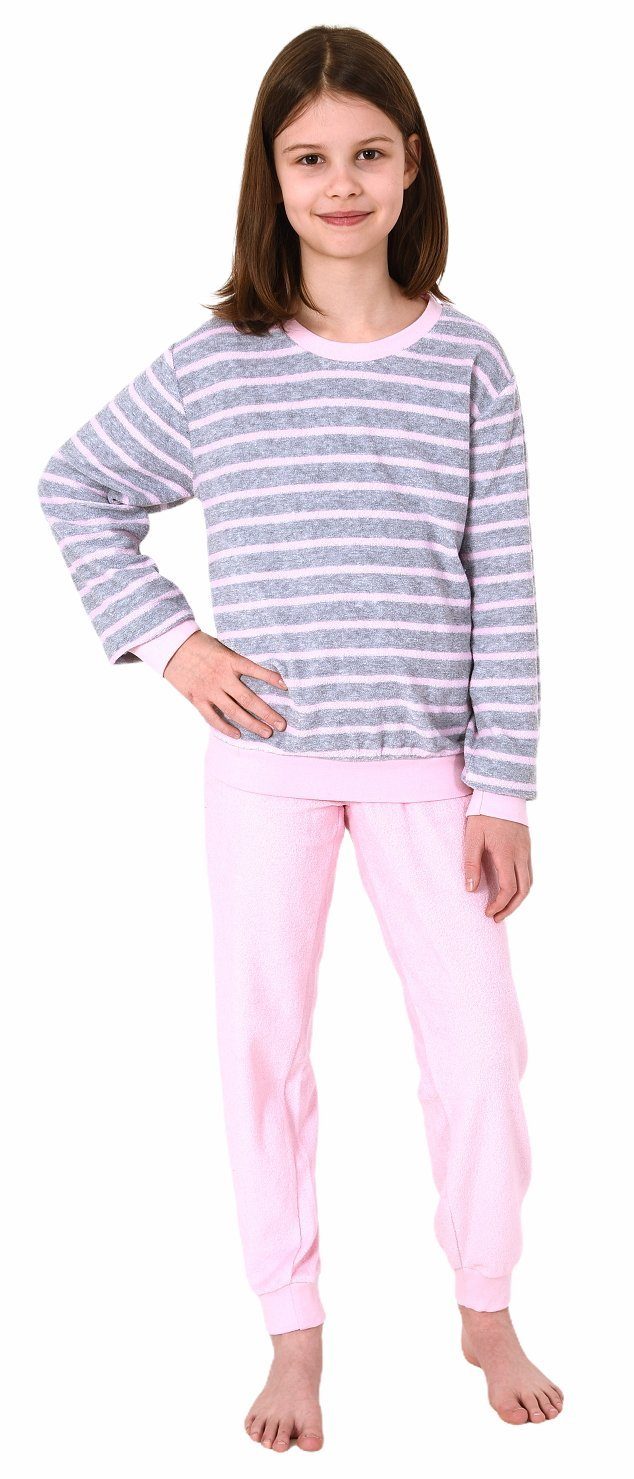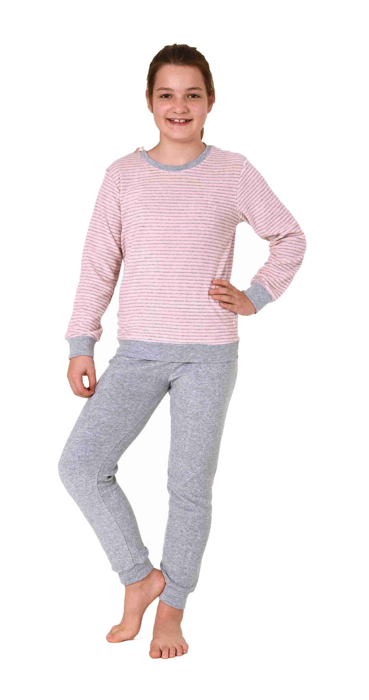 Mädchen Frottee Pyjama langarm mit Bündchen Schlafanzug mit Herz - Motiv - 291 401 13 780