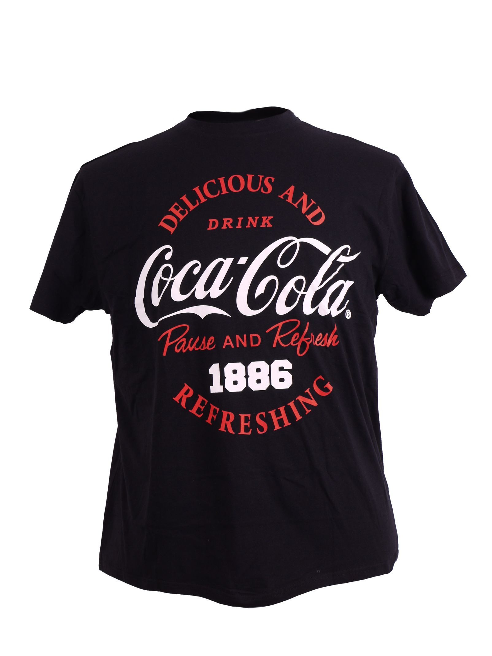 Dieses schwarze Kurzarmshirt von North Latitude ist ideal für Männer, die einen klassischen Retro-Look mögen. Hergestellt aus 100% Baumwolle, ist es atmungsaktiv und bietet eine lockere Passform für optimalen Tragekomfort. Der Druck auf der Vorderseite zeigt das Coca-Cola-Logo mit „Delicious and Refreshing“ und „Pause and Refresh 1886“ in Weiß und Rot. Der Rundhalsausschnitt sorgt für eine schlichte, vielseitige Optik.