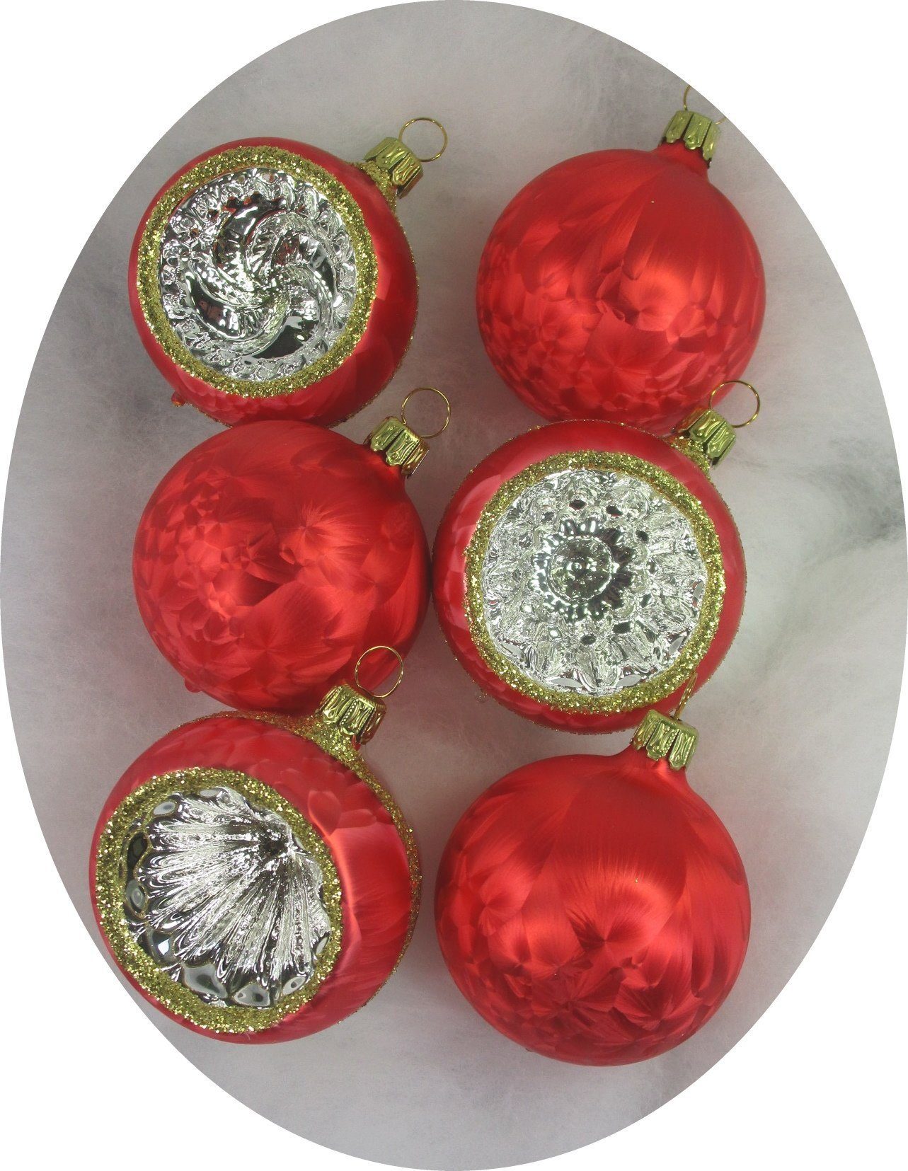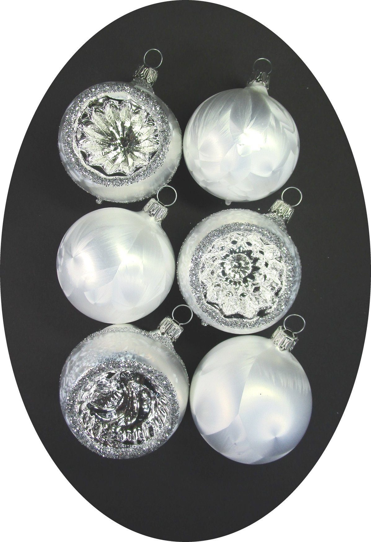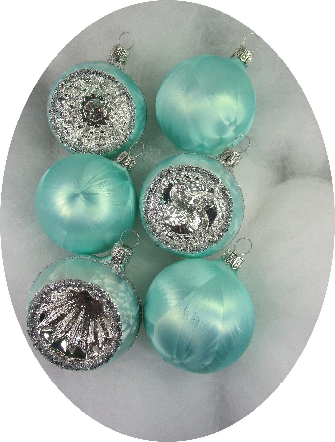 Lieferumfang | 6 Christbaumkugeln: jeweils 3 Eislackkugeln und 3 Reflexkugeln |