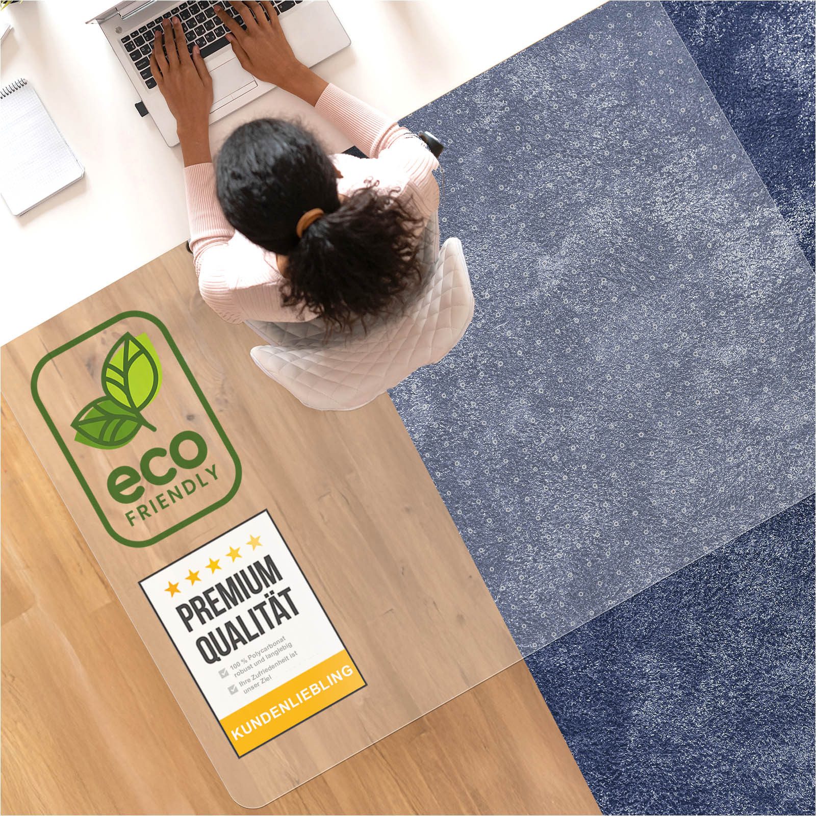 Sorgen Sie für eine angenehme Arbeitsatmosphäre mit der Premium Bodenschutzmatte für Teppichböden.