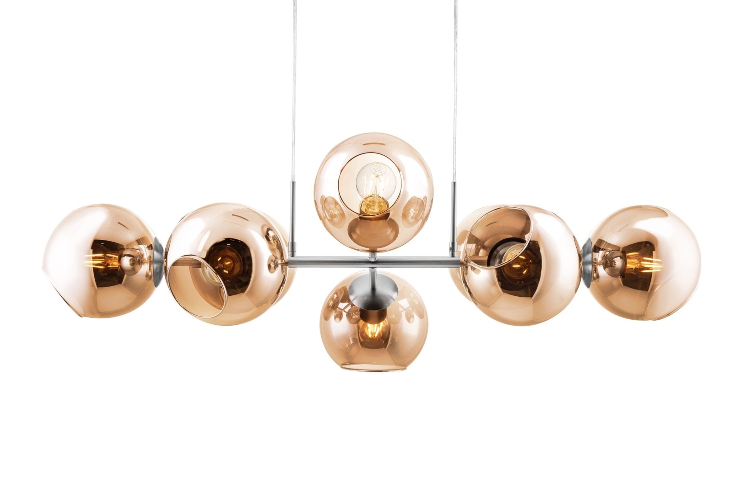 8-flammige Hängeleuchte mit Leuchtschirmen aus amberfarbenem Glas