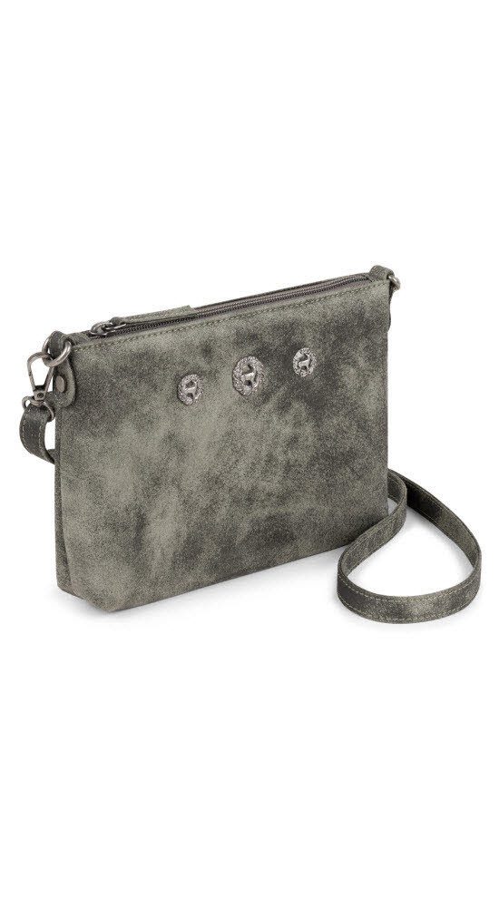 Die süße Trachtentasche Josphine in Grafit von Nübler ist der optimale Begleiter zu jedem Trachtenoutfit. Auf der Tasche befinden sich drei runde altsilberne Akzente die einen Kranz mit einem Hirsch darstellen. Geschlossen wird die Trachtentasche mit einem Reißverschluss der mit einem kleinen Lederband in der Farbe Grafit verziert ist. Josphine können Sie perfekt zum Dirndl oder zur Lederhose kombinieren. Auch als Geschenkidee ist diese Tasche perfekt geeignet.