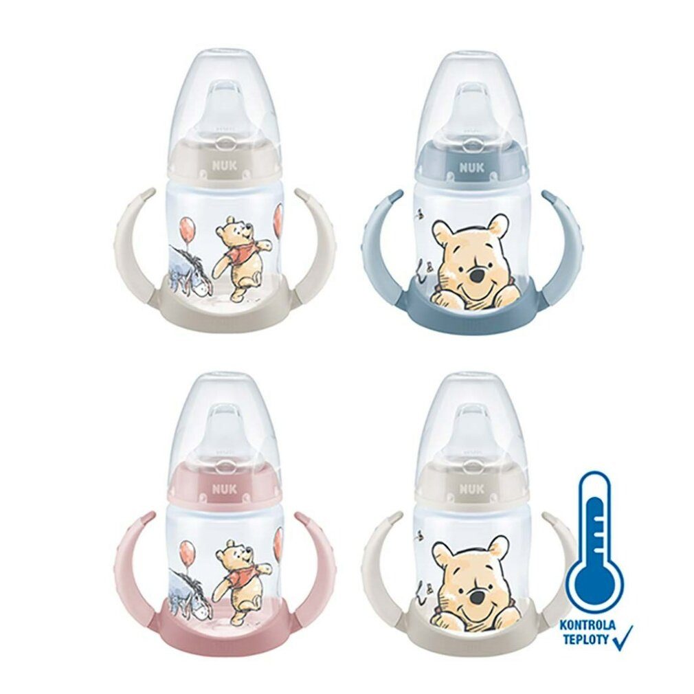 NUK First Choice Lernflasche für Babys mit Temperaturkontrolle. Die eingebaute Temperaturkontrollanzeige wechselt die Farbe, wenn der Inhalt der Flasche zu heiß ist. Die blaue Farbe des Indikators wechselt zu weiß. Die Flasche erleichtert Babys den Übergang vom Stillen zum selbstständigen Trinken. Die Babyflasche hat einen weichen, tropffreien Sauger aus Silikon, so dass Sie sich keine Sorgen machen müssen, dass der Inhalt verschüttet wird. Sie ist ergonomisch geformt und hat rutschfeste Griffe, so dass Ihr Baby die Flasche selbständig halten kann, zum Beispiel während der Fahrt im Kinderwagen. Der Vorteil dieser Superflasche ist, dass sie sich leicht zerlegen und reinigen lässt. Hergestellt aus hochwertigem Polypropylen-Kunststoff, Geeignet für Kinder von 6 bis 18 Monaten. Klinisch getestet. Die Packung enthält:- Trinkflasche 150 ml- Schraubring- Verschlusskappe und Schutzhülle- Silikonsauger, der ein Auslaufen verhindert- Temperaturanzeige