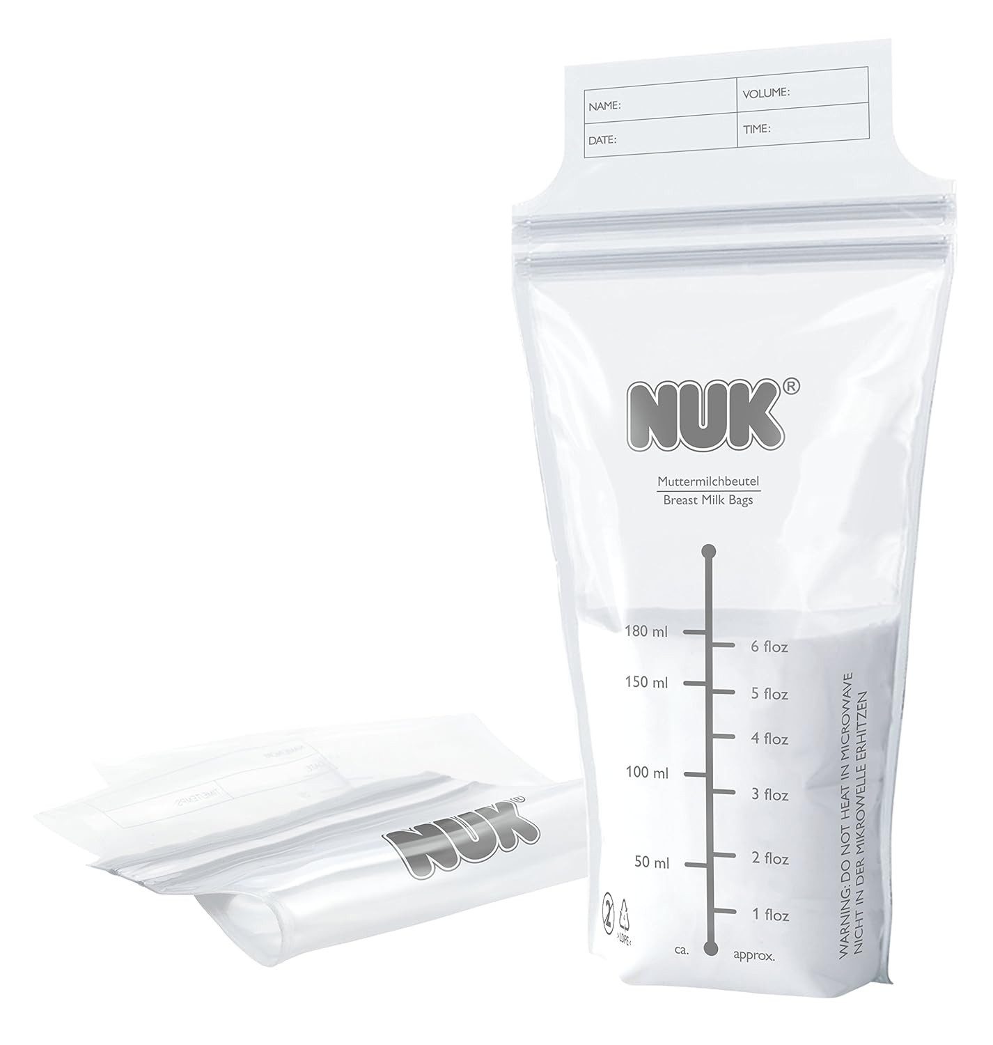 - NUK Muttermilchbeutel - Muttermilch ist das Beste für die gesunde Entwicklung des Babys. Mütter, die nicht stillen können oder wollen, können die wertvolle Milch abpumpen und mit dem Fläschchen füttern. Doch wohin nur mit der Milch, die auf Vorrat abgepumpt wurde? Da kann es im Kühl- und Gefrierschrank schon einmal ganz schön eng werden! Für dieses Problem gibt es jetzt eine unkomplizierte Lösung: Die NUK Muttermilchbeutel. - Hygienisch - Die NUK Muttermilchbeutel sind sterilisiert und sofort einsatzbereit. - Platzsparend - Die Beutel lassen sich flexibel übereinander stapeln und sind für die Aufbewahrung im Kühlschrank und im Gefrierschrank geeignet. - Schnell - Sofort einsetzbar, wenn es einmal schnell gehen soll! Das Reinigen vor oder nach dem Gebrauch ist nicht nötig. - Auslaufsicher - Der doppelte Sicherheitsverschluss hält die wertvolle Milch sicher im Inneren des Beutels, der aus BPA-freiem Kunststoff gefertigt ist. - Всеs im Blick - Dank Beschriftungsfeld und Skala ist immer erkennbar, wann die Milch abgepumpt wurde und wie viel Milch sich im Beutel befindet. Jeder Beutel fasst 180 ml Flüssigkeit. - Praktische Ausgießöffnung - Kein Kleckern beim Umfüllen der Milch ins Fläschchen. NUK Muttermilchbeutel: Die unkomplizierte Möglichkeit, Muttermilch hygienisch und platzsparend aufzubewahren.