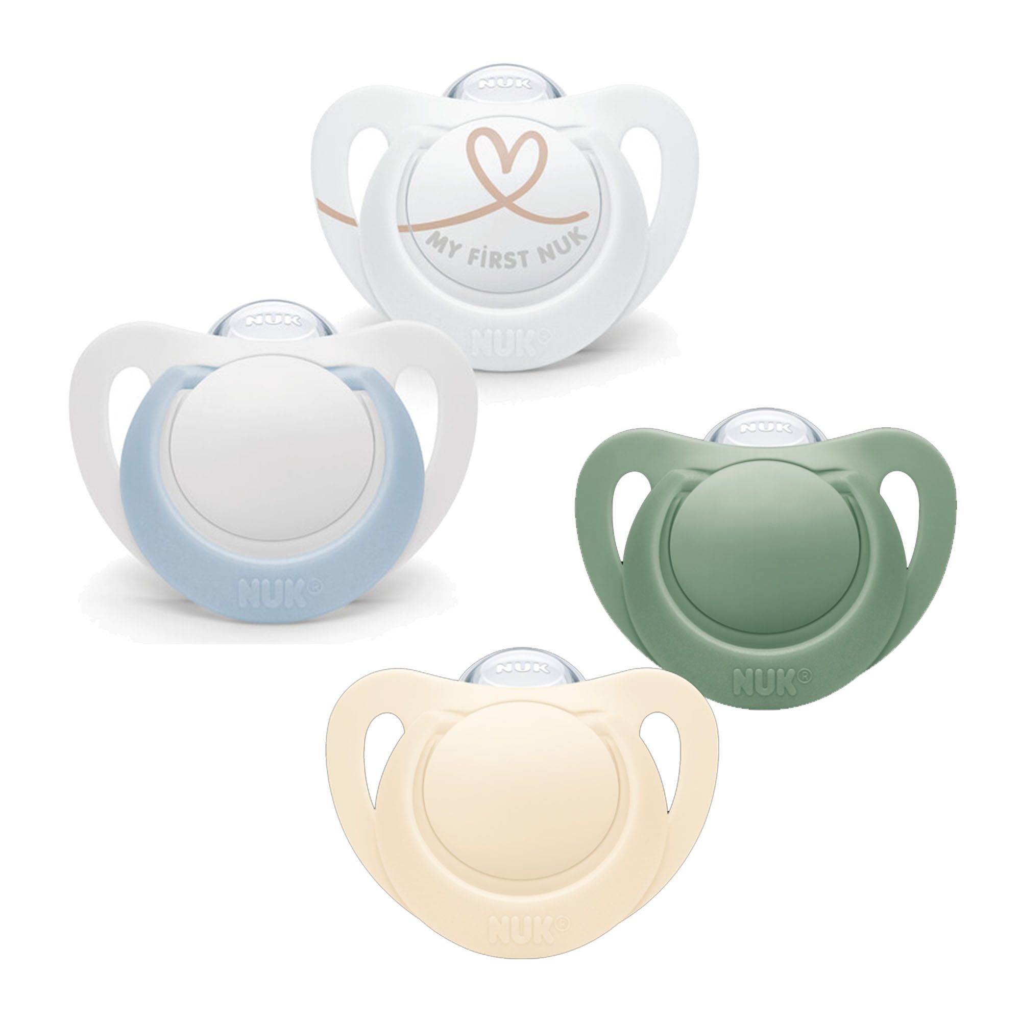 1 x 2er NUK Star Beruhigungssauger für Neugeborene 0-2M 1 x 2er NUK for Nature Silikon-Schnuller 0-6 0-2 M Extra klein für zarte Neugeborene von 0-2 Monaten, beruhigt 99% der Babys* Besonders stillfreundlich* - problemloses Wechseln zwischen Brust und Schnuller Besonders weich, schmiegt sich dank spezieller Soft Zone an der Oberseite sanft an den Gaumen Original NUK Form – oben rund und unten flach, lässt Freiraum für die natürliche Saugbewegungen Stabile, wiederverwendbare Transportbox, 2 Stück pro Packung 0-6 NUK for Nature Silikon-Schnuller – Beruhigt nachhaltig Babys lieben ihren Schnuller! Die original NUK Form des NUK for Nature Schnullers ist von der Natur inspiriert: oben rund und unten flach. Mit seiner besonders weichen Soft Zone schmiegt sich der NUK for Nature Schnuller an den Gaumen und lässt gleichzeitig der Zunge Freiraum für die natürlichen Saugbewegungen. Keine Überraschung also, dass er 99 % der Babys beruhigt.** Außerdem ist er besonders stillfreundlich und reduziert den Druck auf Kiefer und Zähne.** Für eine gesunde orale Entwicklung.**