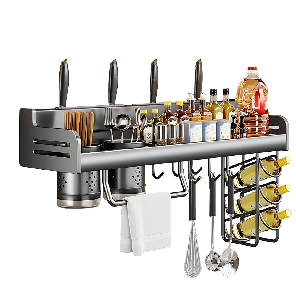 Gewürzregal Regal maximiert die räumliche Sparung. Dies hängende Küchenregal nutzt den Platz an der Wand voll aus, um Ihre Lieblingskräuter und -gewürze an einem bequemen und leicht zugänglichen Ort aufzubewahren und so wertvolle Küchenarbeitsplatten oder Schrankflächen zu sparen