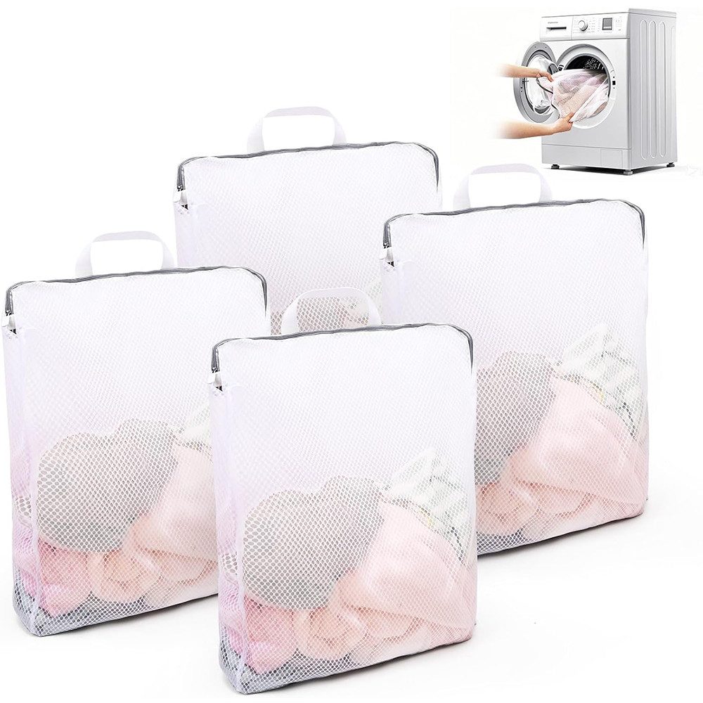 Spezifikationen: Material: Polyesterfaser Größe: 50 x 60 x 10cm Farben: Weiß Paket Enthält: 4 x Wäschenetz