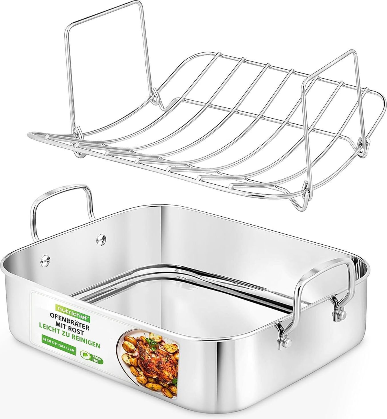 HOCHWERTIGER BRÄTER: 50,8 cm großer, polierter Edelstahlbräter mit Rost und Deckel, ideal für Thanksgiving und zarte Braten.