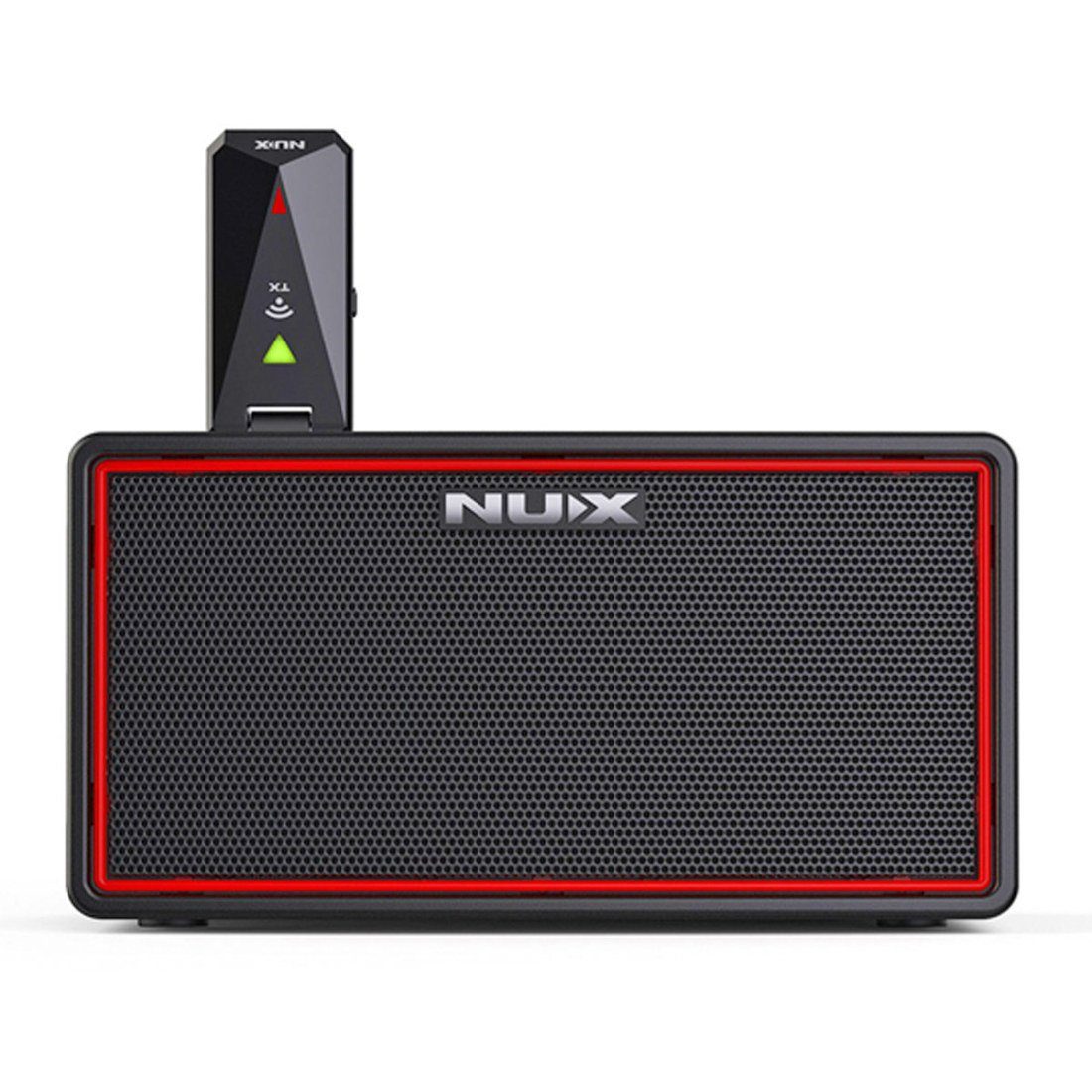 Der kabelloseNux-Sender ist im Lieferumfang enthalten. So kann über dasintegrierte Sender- und Empfängersystem mit Gitarre, Basssowie aktiven und passiven Tonabnehmern gearbeitet werden - ideal für unterwegsohne lästige Kabel mitzunehmen.