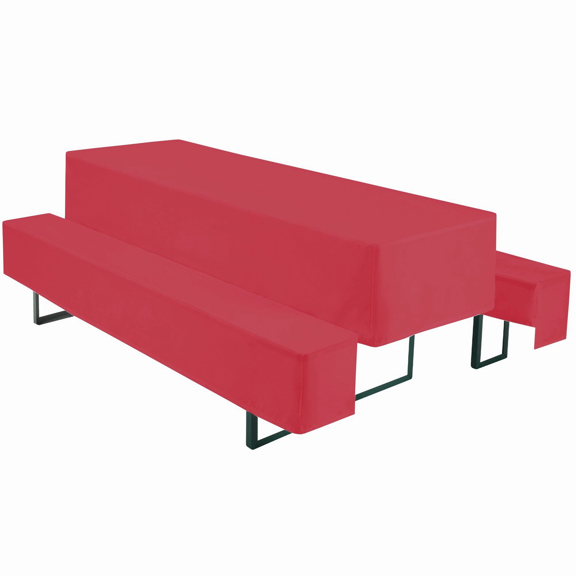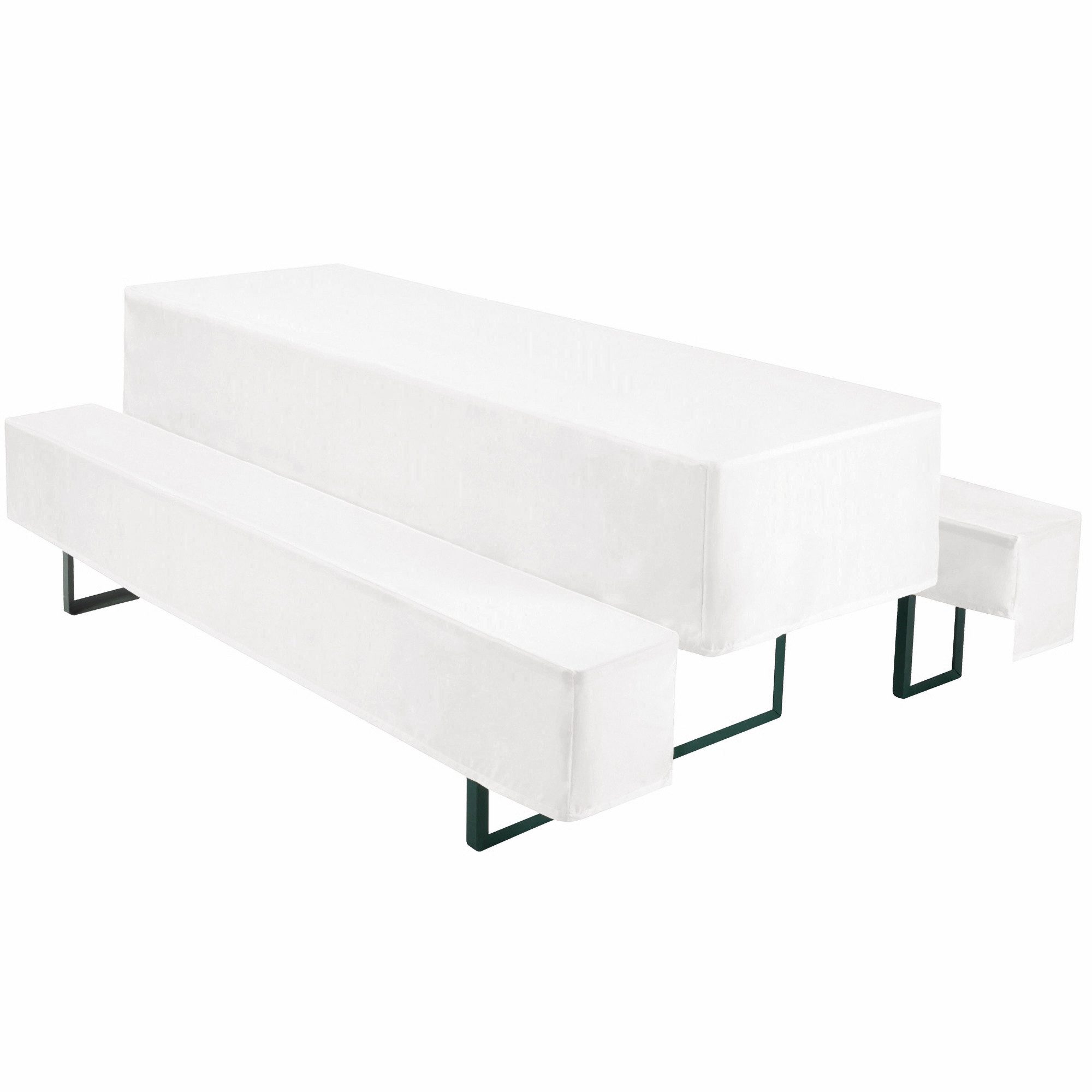 Die Hussen sind knitterarm und können problemlos bei 40° C in der Maschine gewaschen werden. Der aufwendig versaumte Rand sorgt für ein edles Erscheinungsbild, während die Aussparungen im Fußbereich der Bierbank-Hussen eine maximale Beinfreiheit bieten. Die hohe Widerstandsfähigkeit des Materials macht das Set ideal für den Einsatz im Innen- und Außenbereich. Ob private Feier oder großes Event, mit diesem Set schaffst Du eine einladende Atmosphäre.