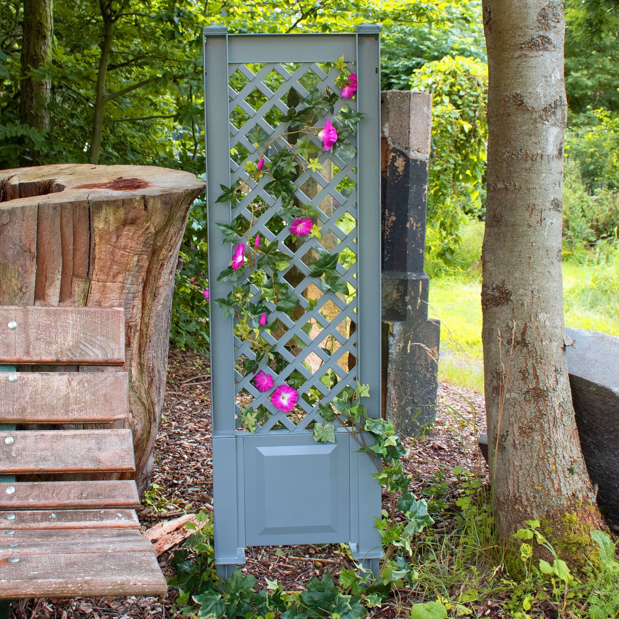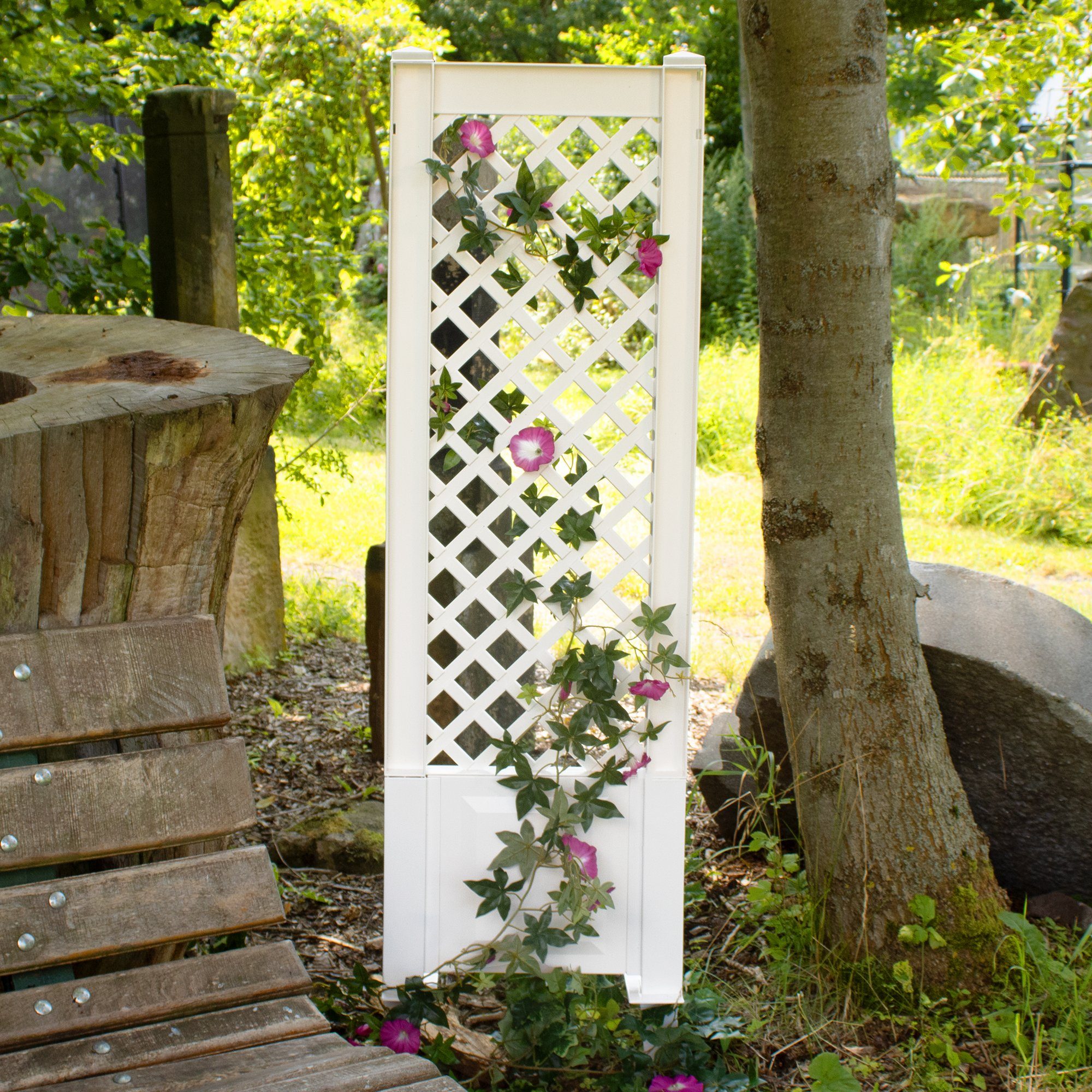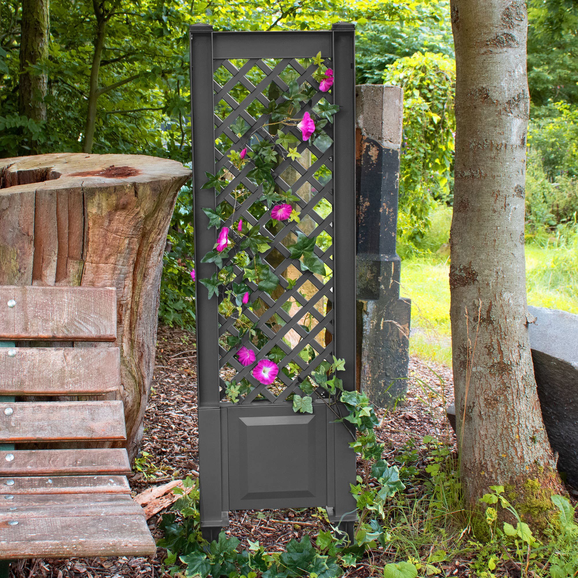 Das Spalier ist in den Farben Anthrazit, Grün, Grau und Weiß erhältlich, sodass du es perfekt an deine Gartenästhetik anpassen kannst. Du kannst beliebig viele Spaliere miteinander verbinden und so individuelle Gestaltungsmöglichkeiten schaffen. Das UV-beständige Material sorgt dafür, dass das Spalier auch bei intensiver Sonneneinstrahlung lange schön bleibt.