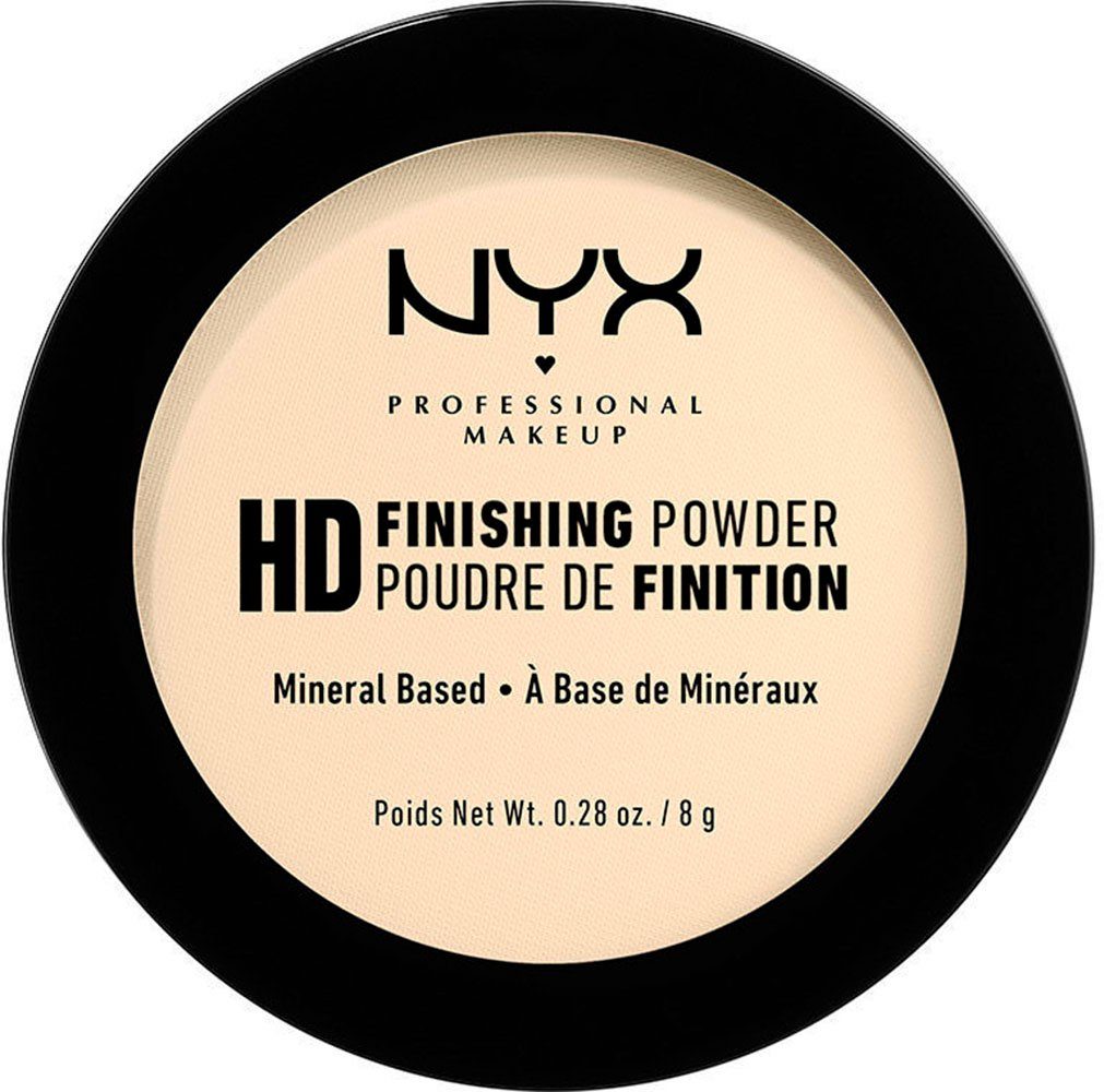 Mineralisches Fixierpuder mit ölabsondierender Wirkung zum Fixieren der Foundation für einen langanhaltenden Effekt und ein frisches, mattes Finish im Gesicht und Dekolleté - Das Puder im Farbton Banane mit einem Gold-/Gelbton eignet sich als Primer oder zur Farbkorrektur und passt zu allen Hauttypen und -tönen - Tragen Sie das Puder einfach unter den Augen, den Wangenknochen, entlang der T-Zone oder anderen Stellen auf, Verwenden Sie das Puder direkt nach der Foundation - Eignet sich zur Fixierung von Flüssig- sowie Puder Makeup, Ideal für unterwegs dank kompakter Größe, Vegane Formel - Lieferumfang: 1x NYX Professional Makeup High Definition Finishing Powder, Banana, 8 Gramm
